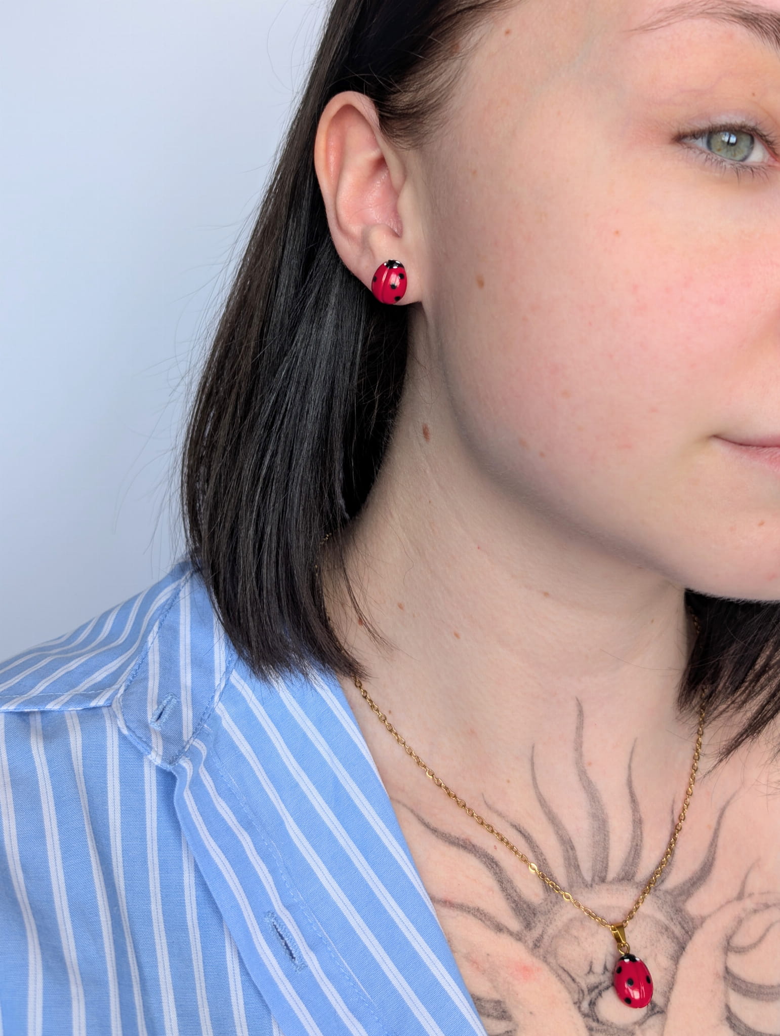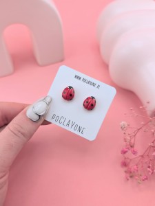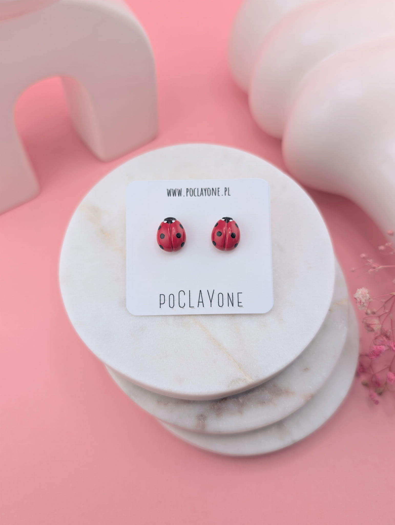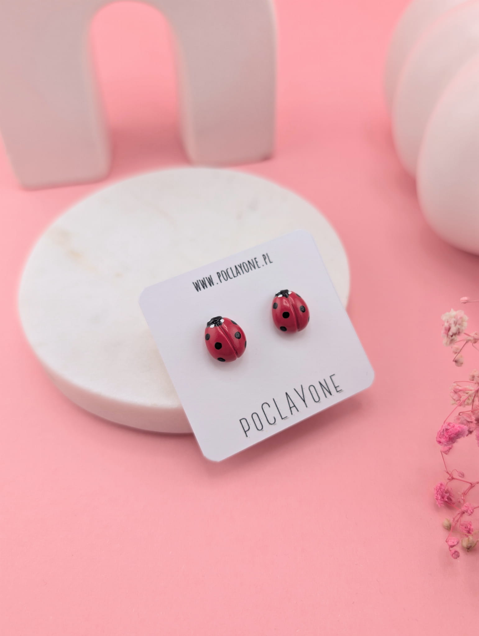 Urocze kolczyki sztyfty w kształcie biedroneczek, ręcznie wykonane z gliny polimerowej i stali chirurgicznej. Kolczyki pełne uroku, idealne na wiosnę lub jako prezent dla miłośników natury.