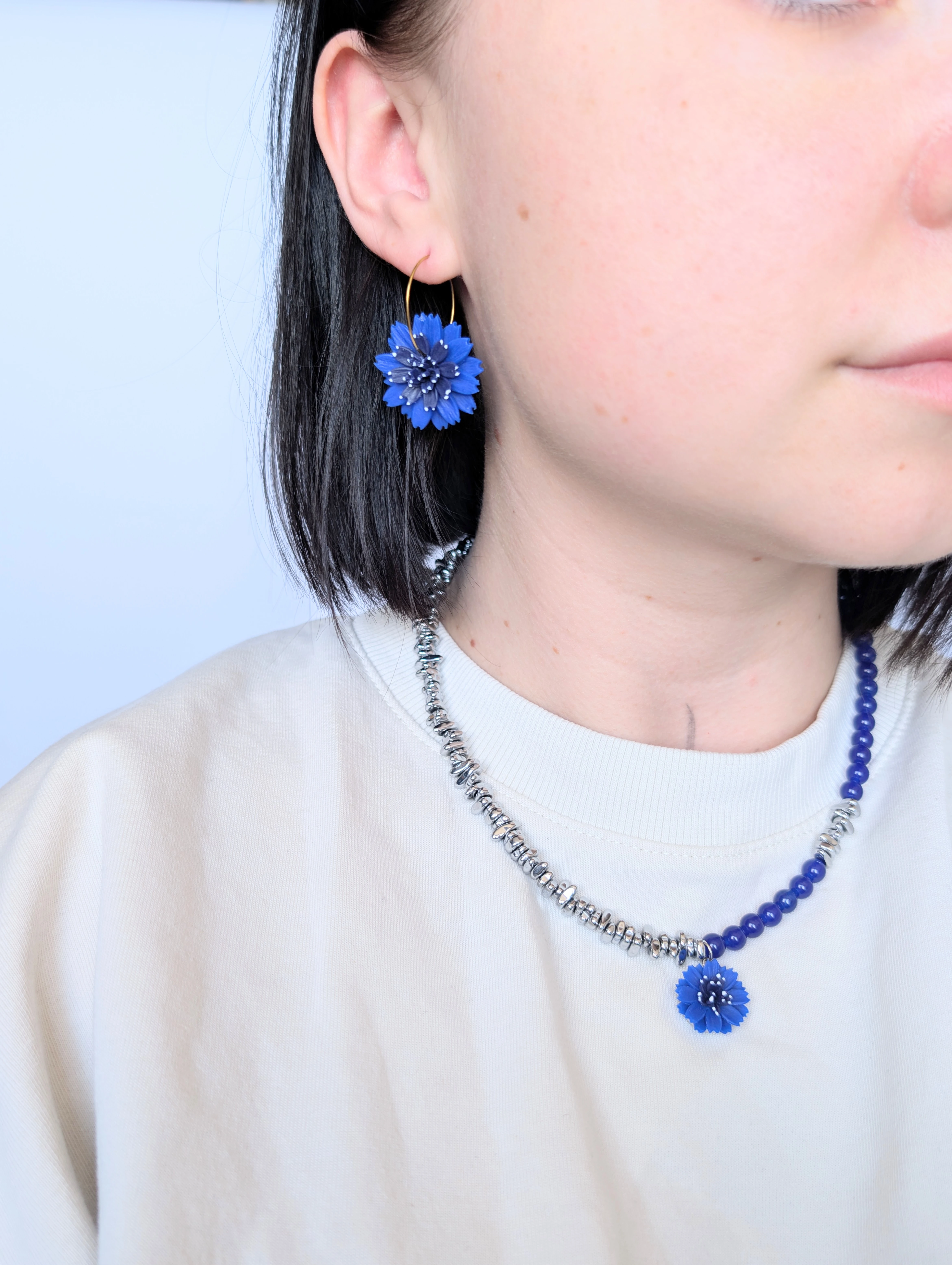 Kolczyki wiszące chabry to wyjątkowa biżuteria inspirowana pięknem polnych kwiatów. Intensywny odcień niebieskiego oraz starannie wykonany kształt kwiatów sprawiają, że kolczyki przyciągają wzrok i dodają stylizacji subtelnej elegancji.
