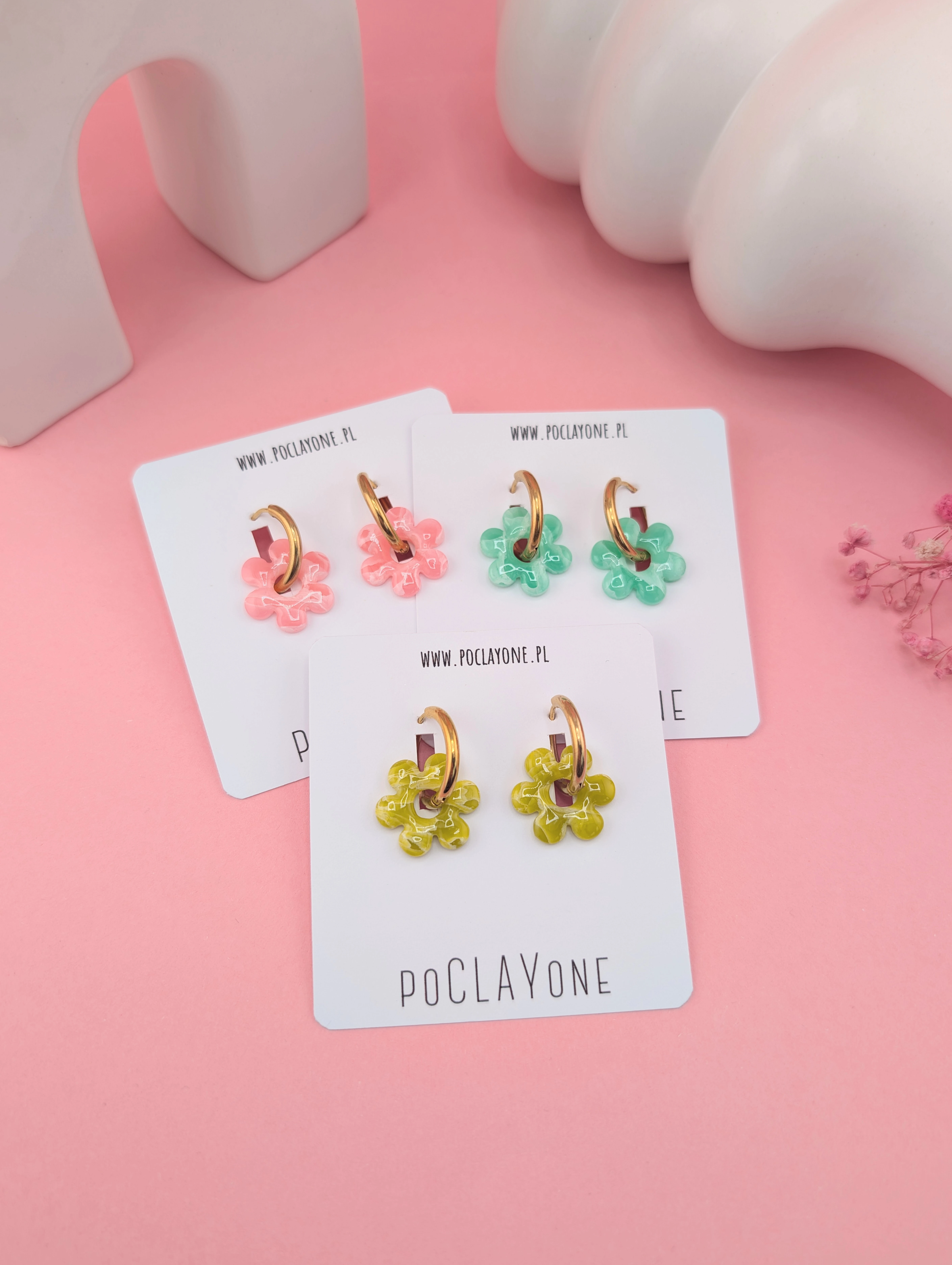 Kolczyki w kształcie kwiatuszków zachwycają cukierkowymi odcieniami różu, limonki i mięty. To idealny dodatek do wiosennych i letnich stylizacji, który dodaje lekkości i dziewczęcego uroku.