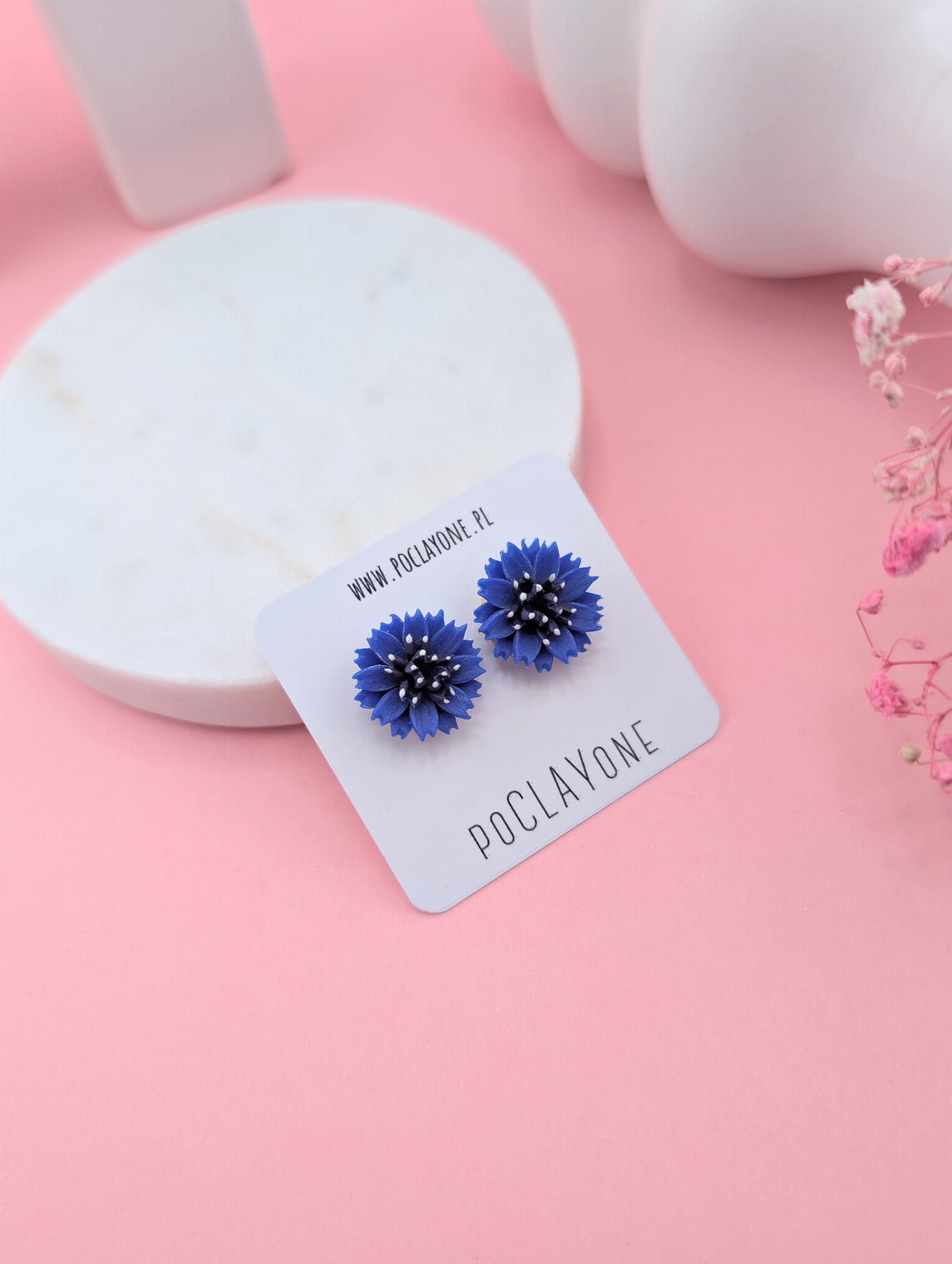 Wprowadź odrobinę letniego nieba do swojej stylizacji dzięki kolczykom sztyftom w kształcie chabrów. Ręcznie modelowane kwiaty z gliny polimerowej oddają każdy detal tych dzikich, polnych kwiatów, emanując naturalnym pięknem i delikatnością. Idealne do codziennych oraz eleganckich, romantycznych stylizacji. W ofercie są również naszyjniki na łańcuszku praz z kamieni naturalnych, które można sobie dobrać do kompletu - znajdują się w zakładce "Naszyjniki".