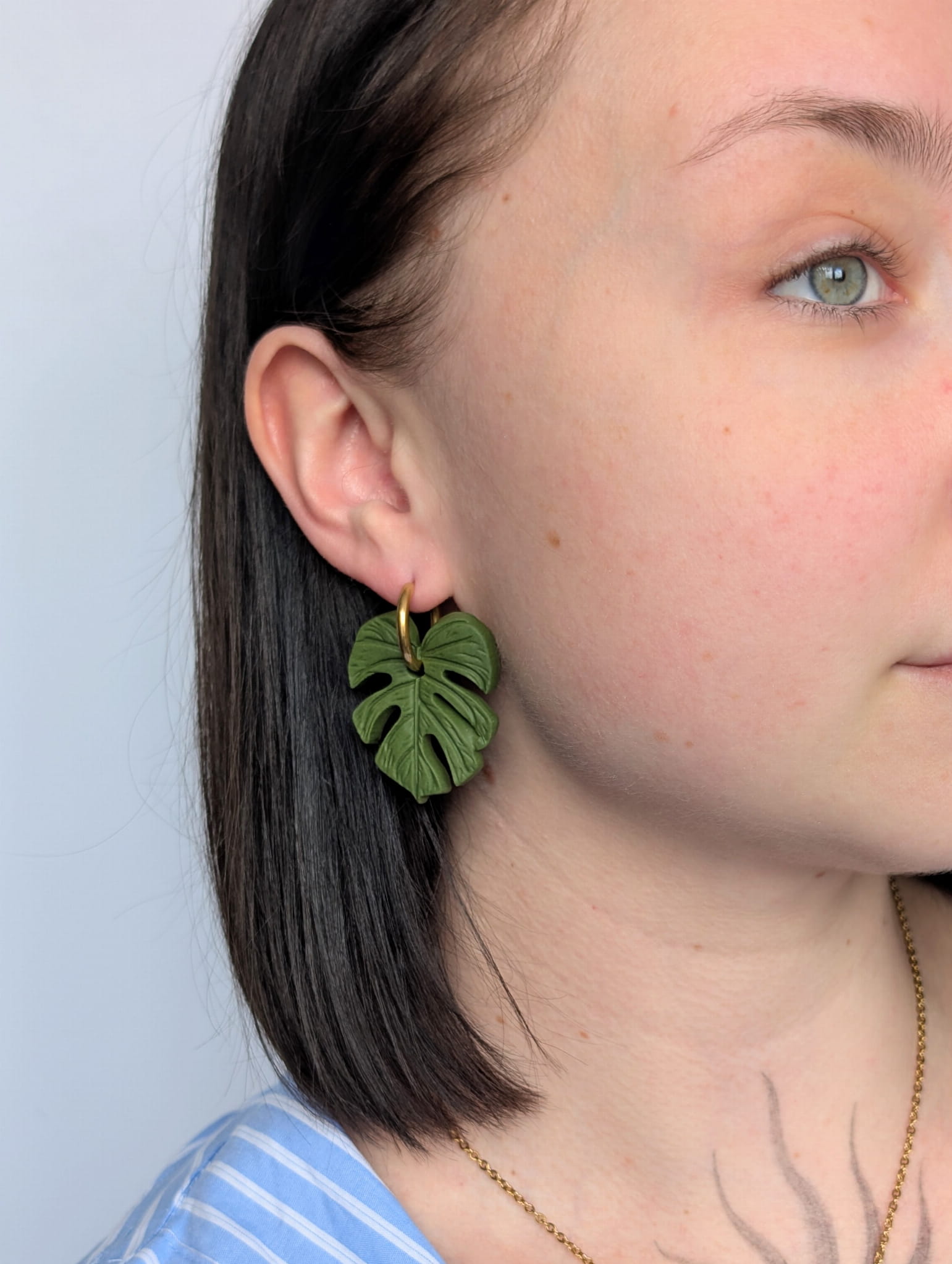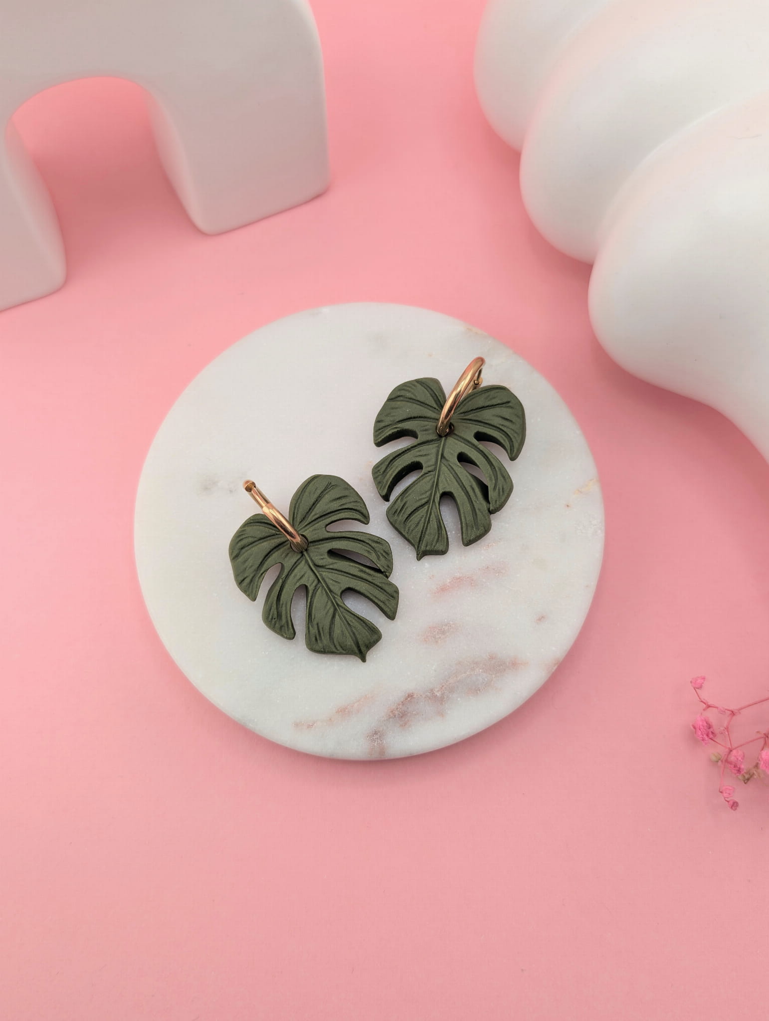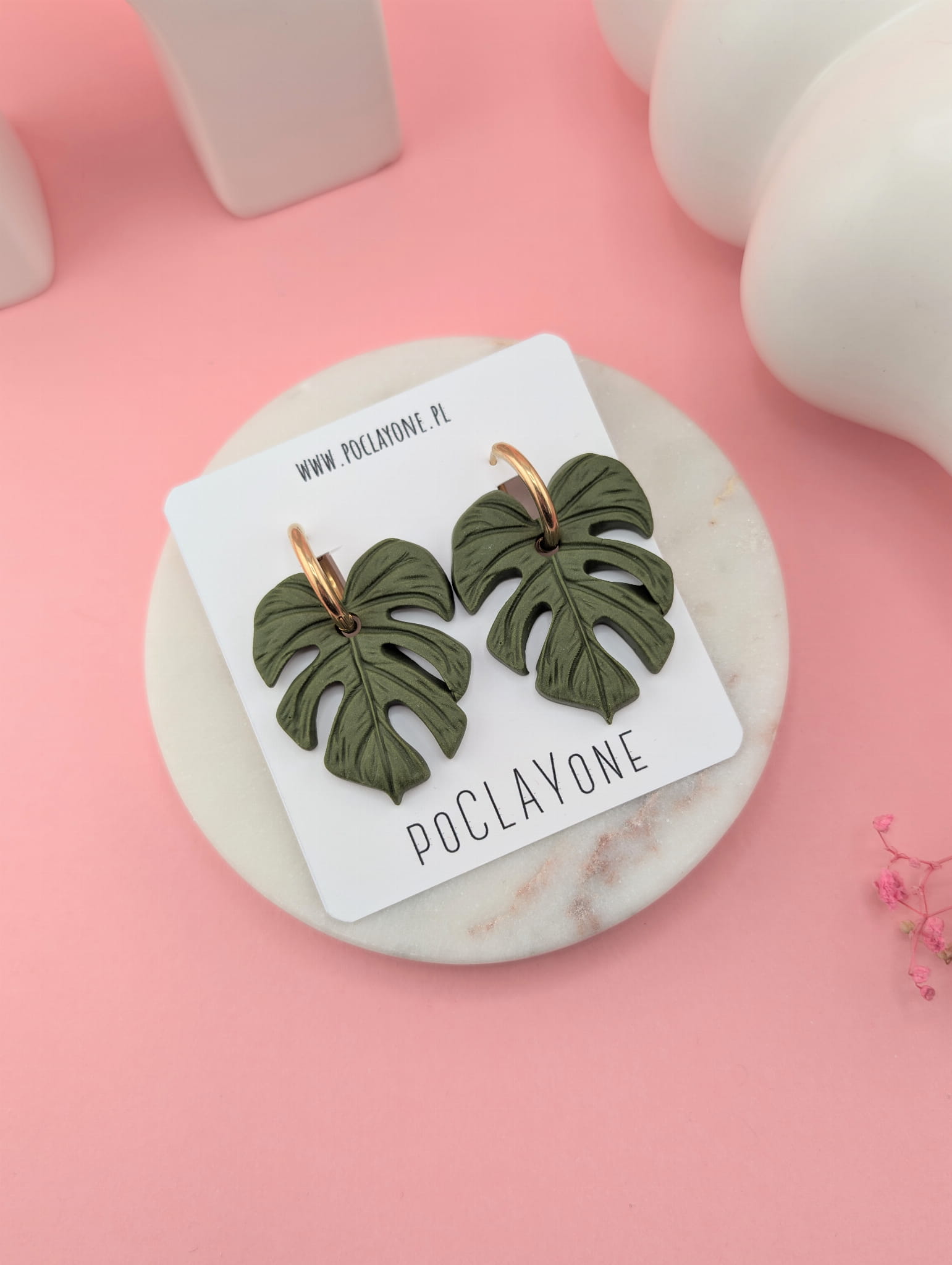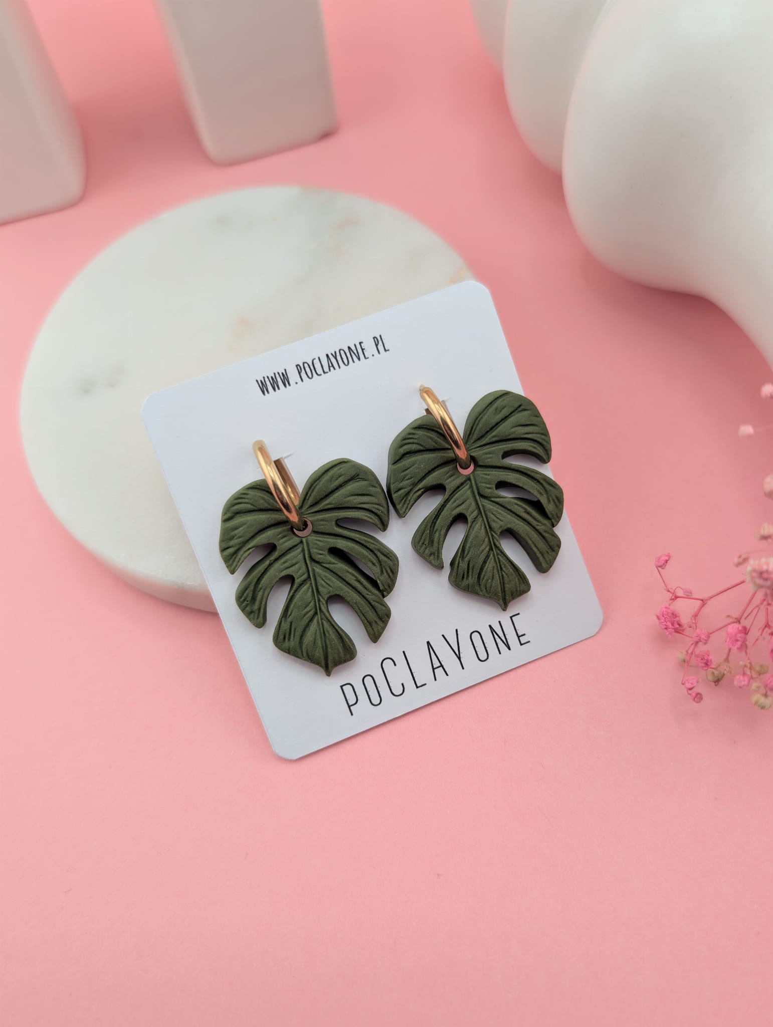 Kolczyki wiszące – liście monstery z gliny polimerowej