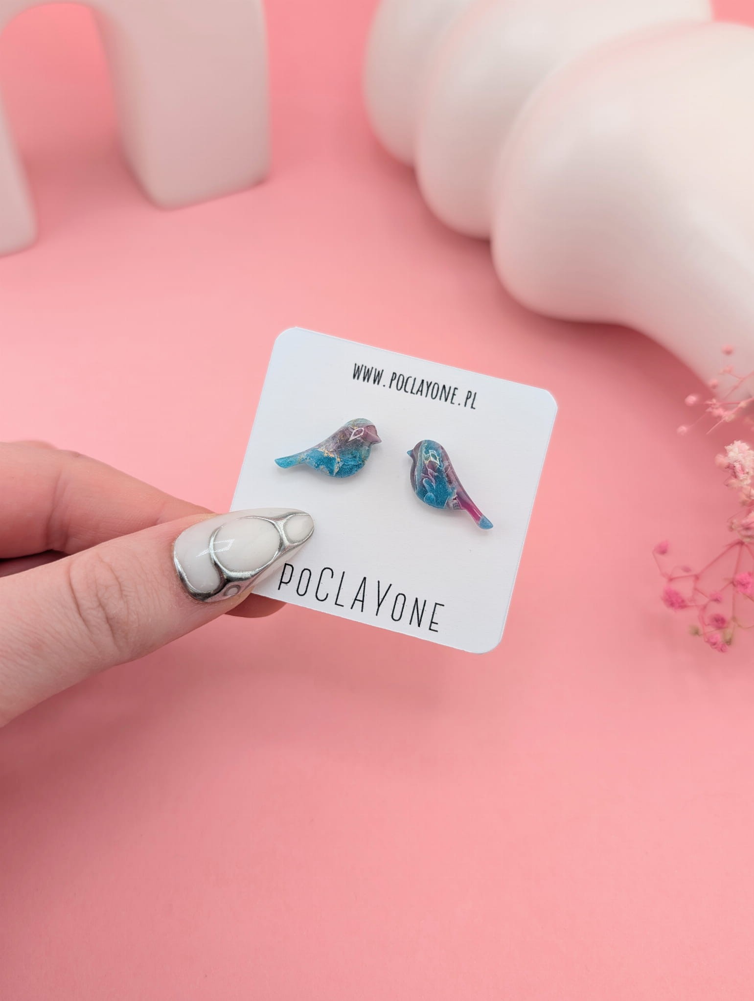 Kolczyki w kształcie ptaszków z kolekcji Lagoon Mist zachwycają marmurkowym połączeniem turkusu, niebieskiego i różu. Kolory przenikają się tworząc subtelny, magiczny efekt inspirowany bajkową laguną.