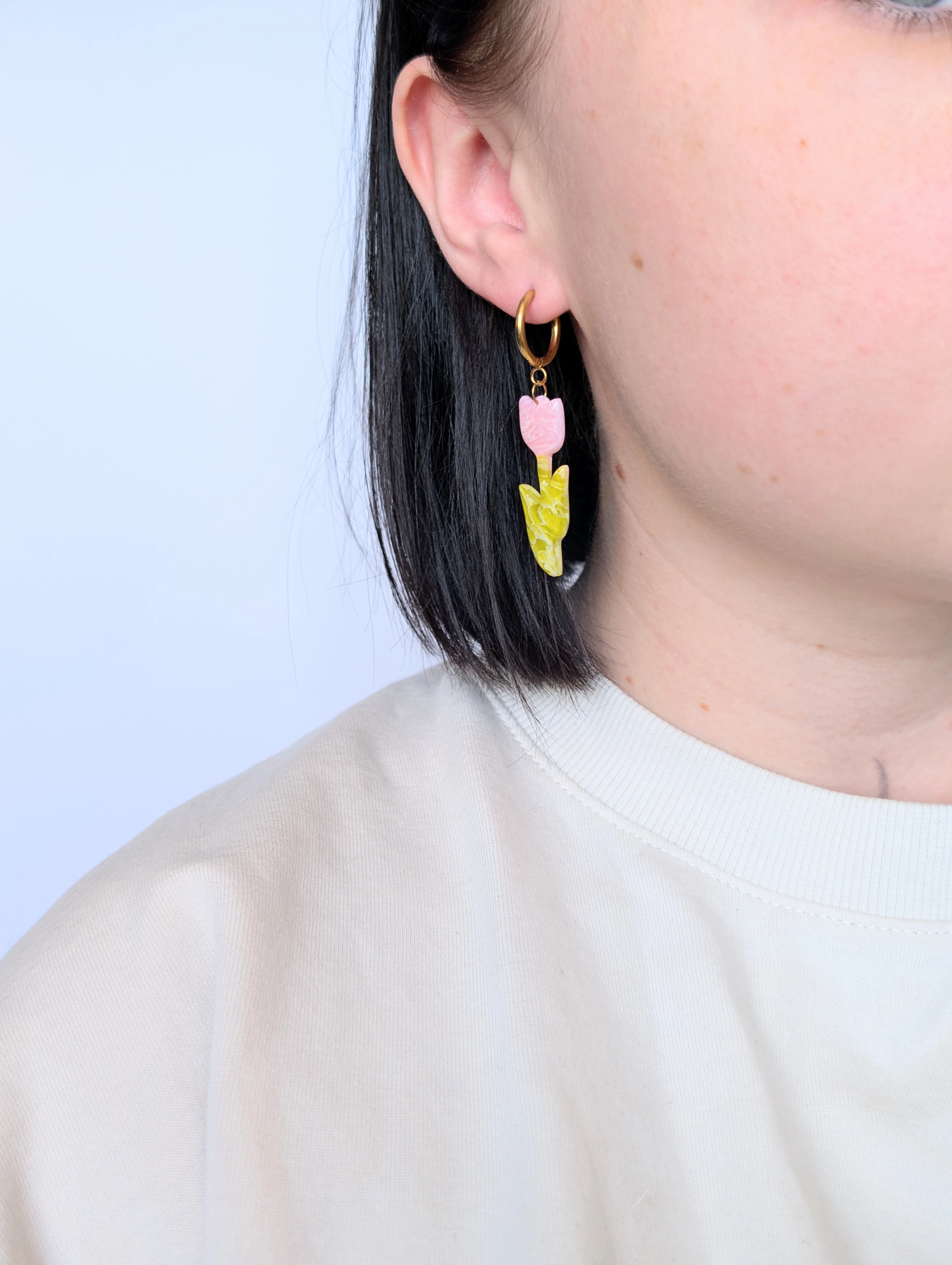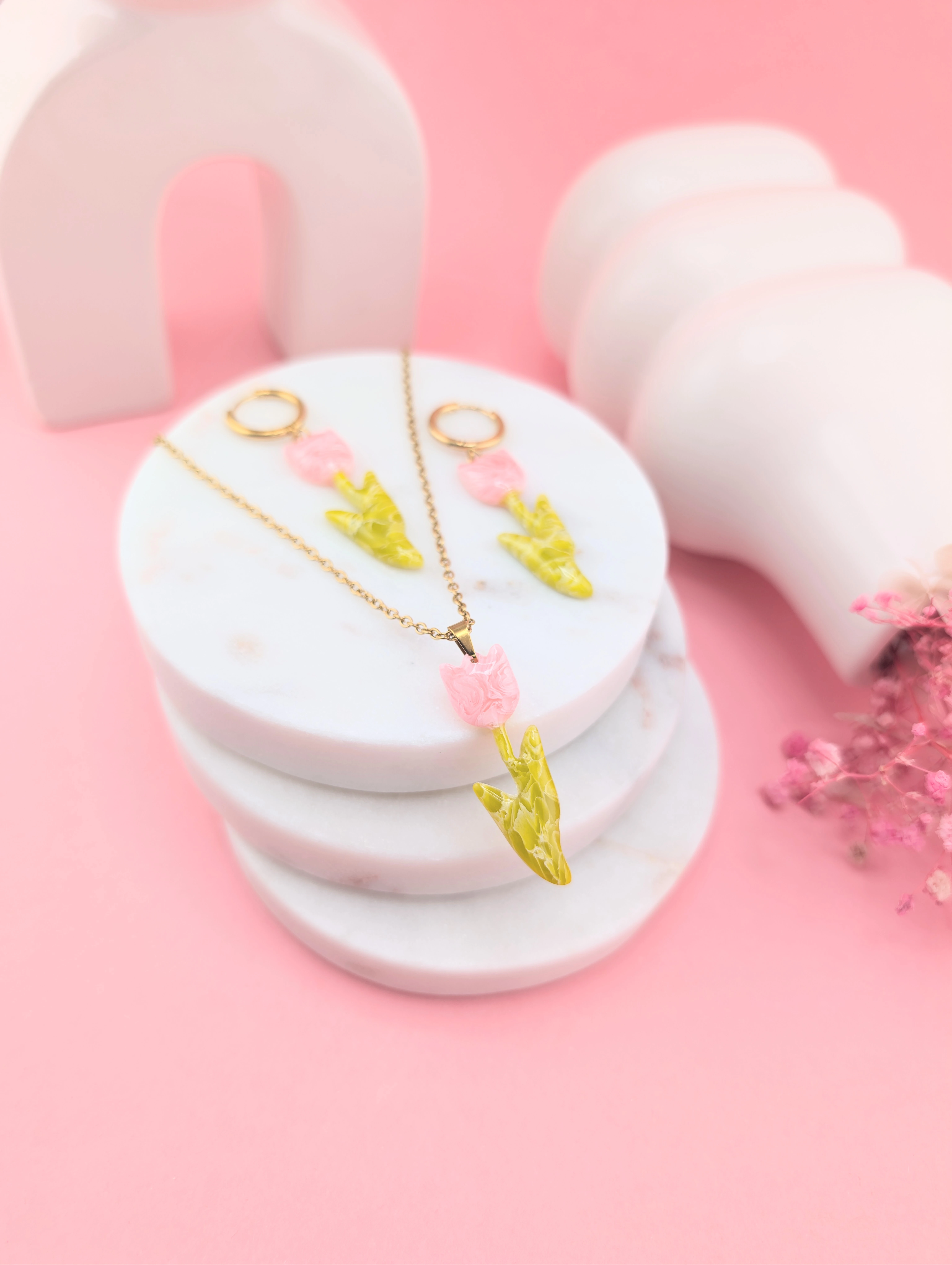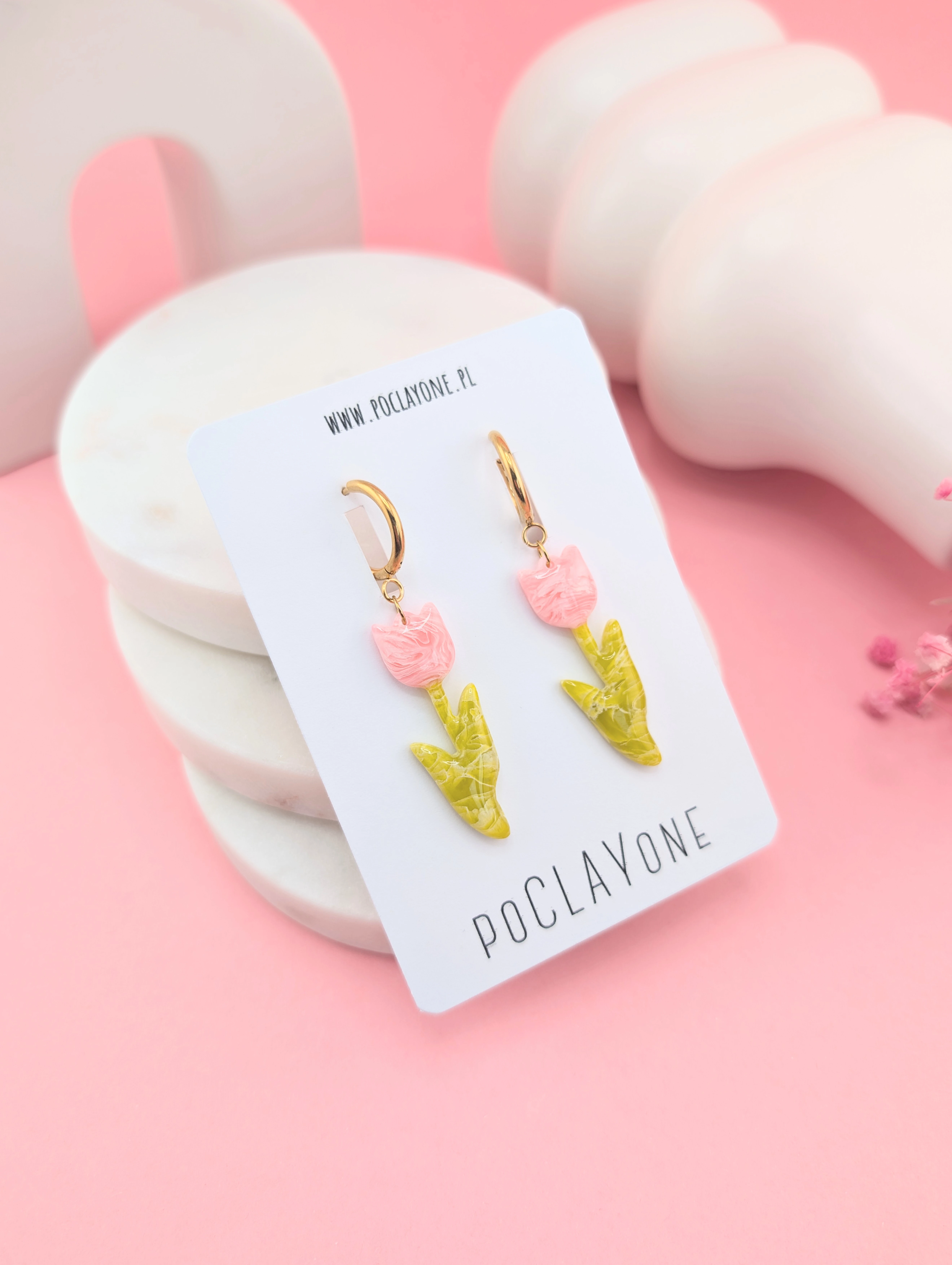 Kolczyki różówe tulipany – wiosenna, kobieca biżuteria inspirowana naturą. Delikatne i eleganckie, idealne na co dzień i na specjalne okazje.