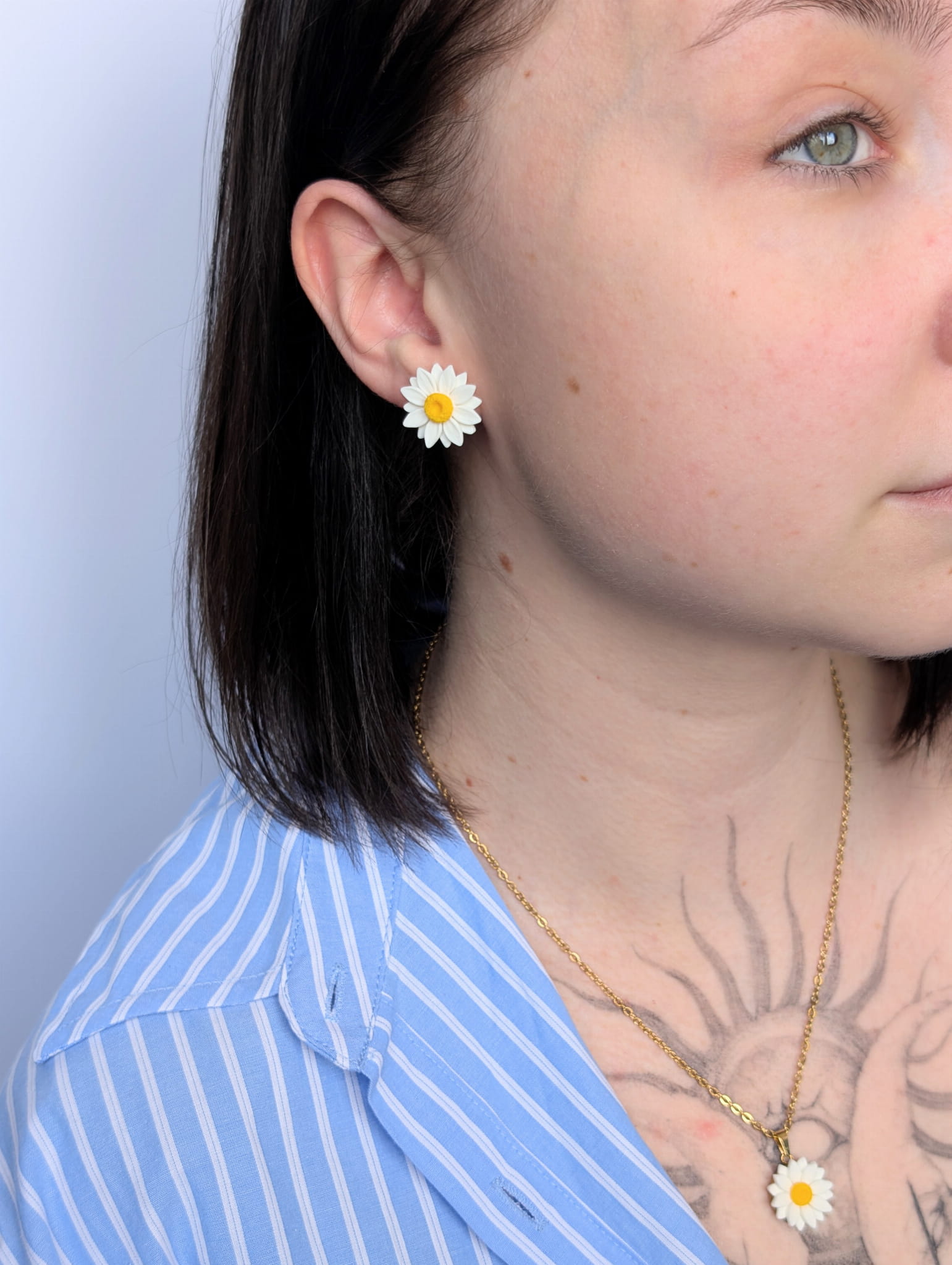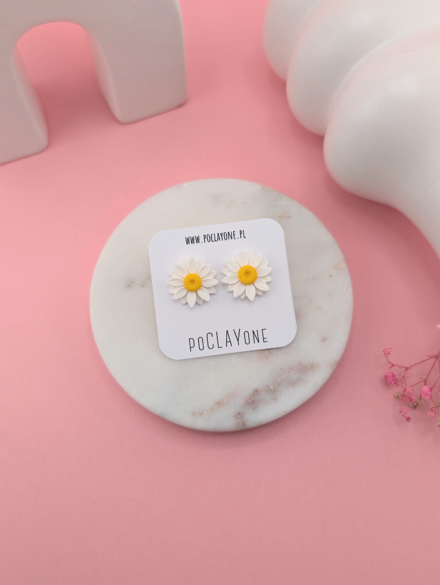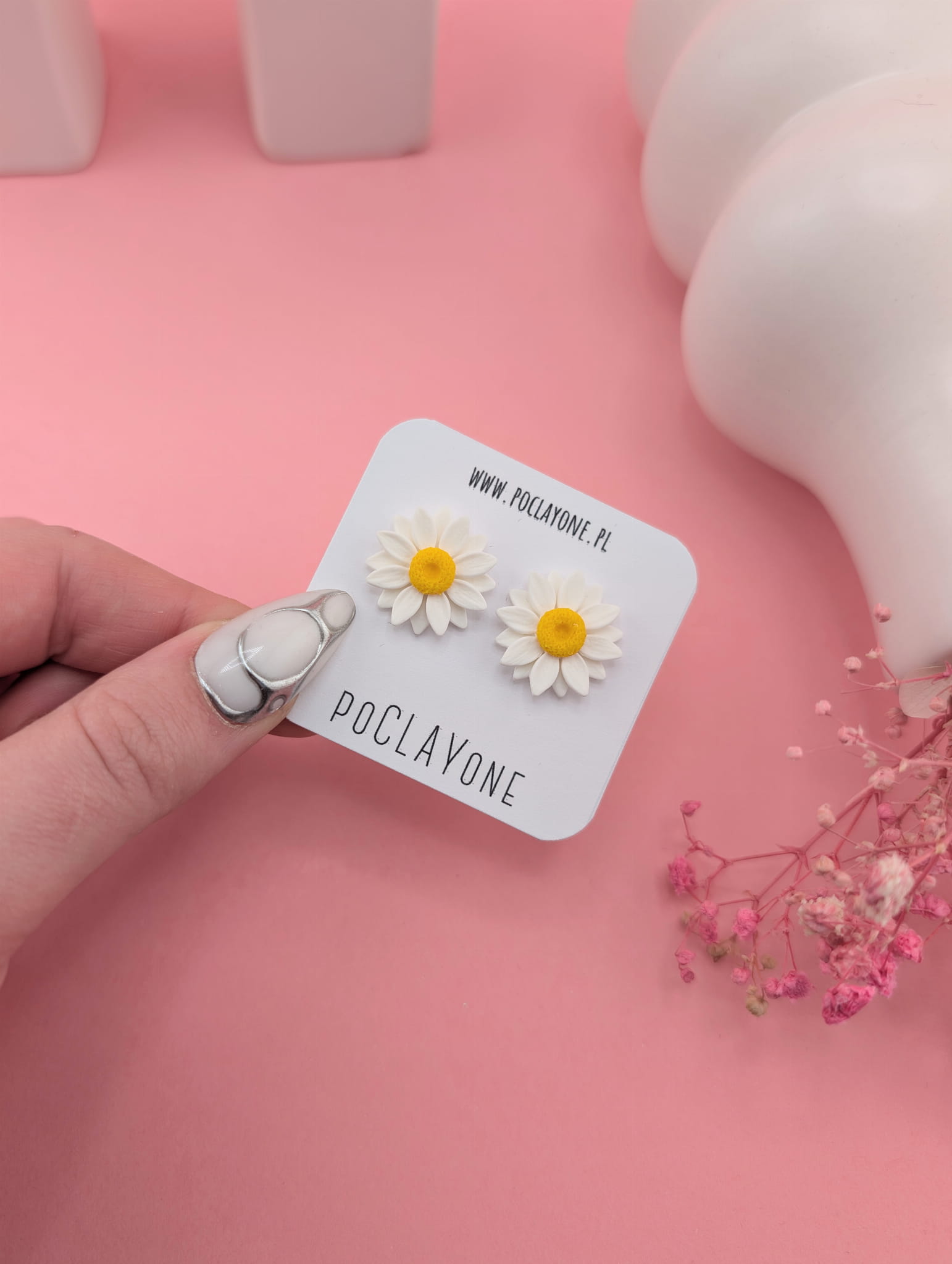 Minimalistyczne kolczyki stokrotki na sztyftach. Ręcznie robione z gliny polimerowej i stali chirurgicznej 316L – lekkie, hipoalergiczne i stylowe!