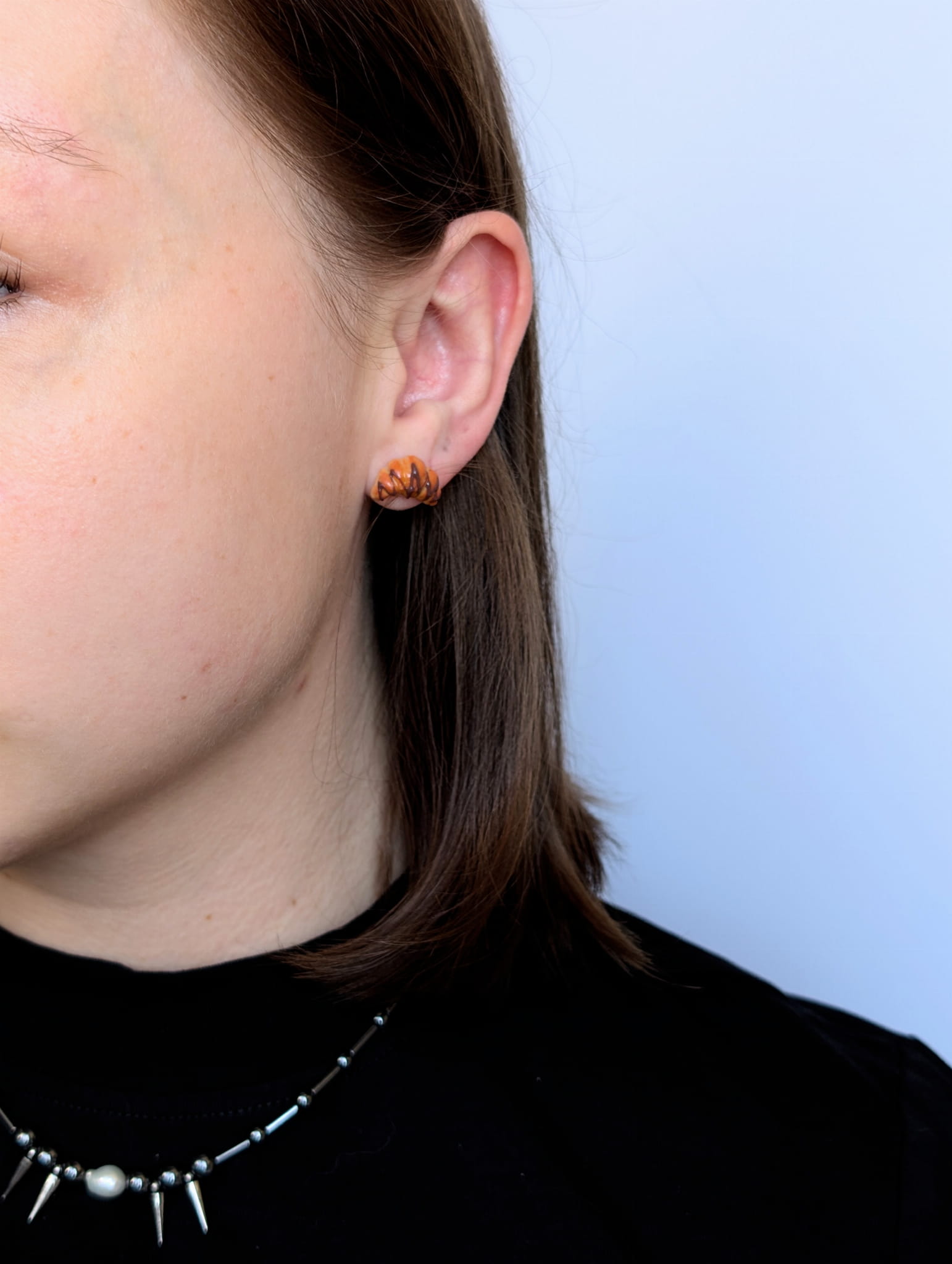 Kolczyki sztyfty Para Nie do Pary – Rogalik i Ziarenko Kawy, jesienna biżuteria handmade