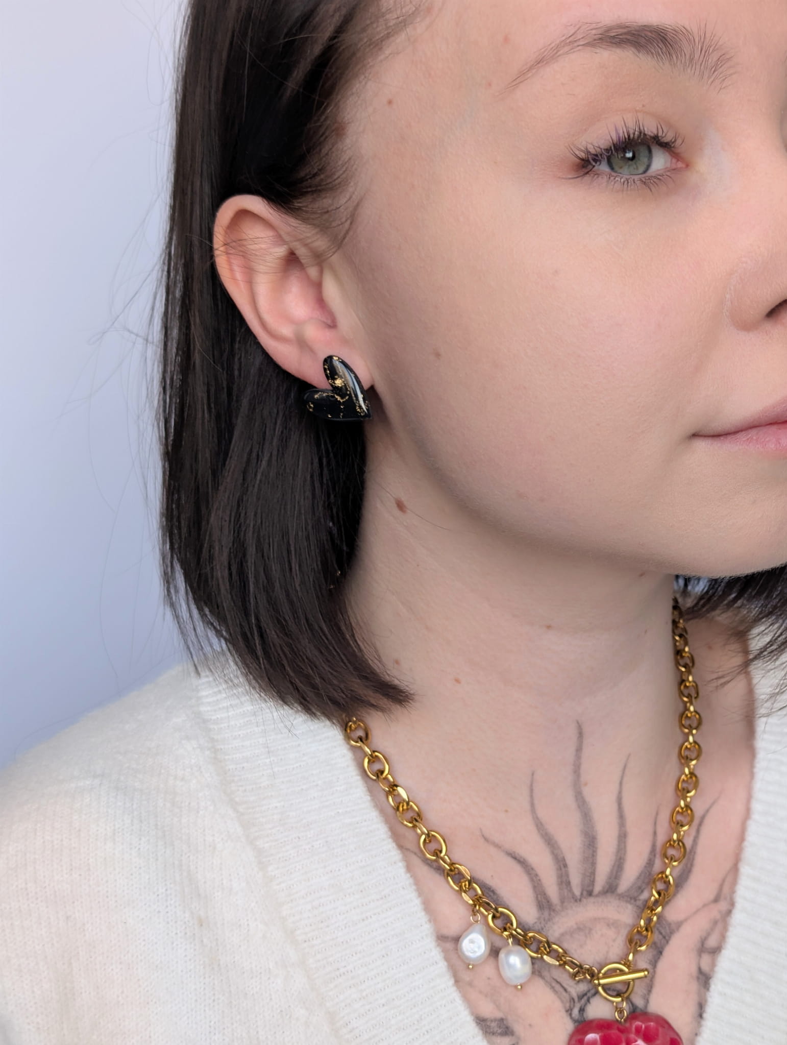 Kolczyki sztyfty serduszka czarno-złote to idealny prezent walentynkowy, który spodoba się zarówno młodszym, jak i dorosłym. Minimalistyczny design pozwala nosić je solo lub w zestawach warstwowych z innymi kolczykami.
