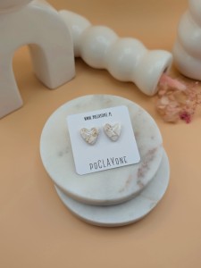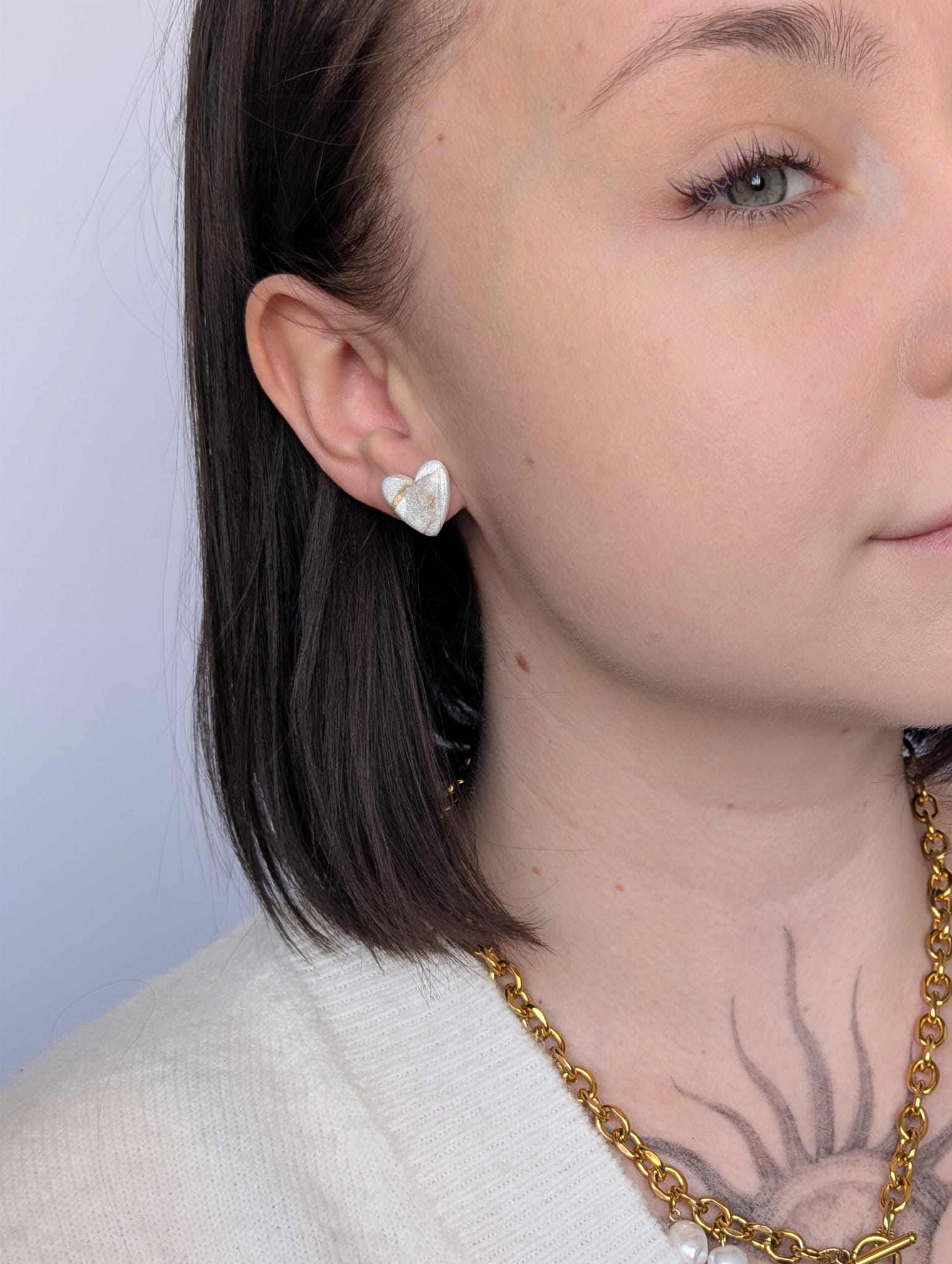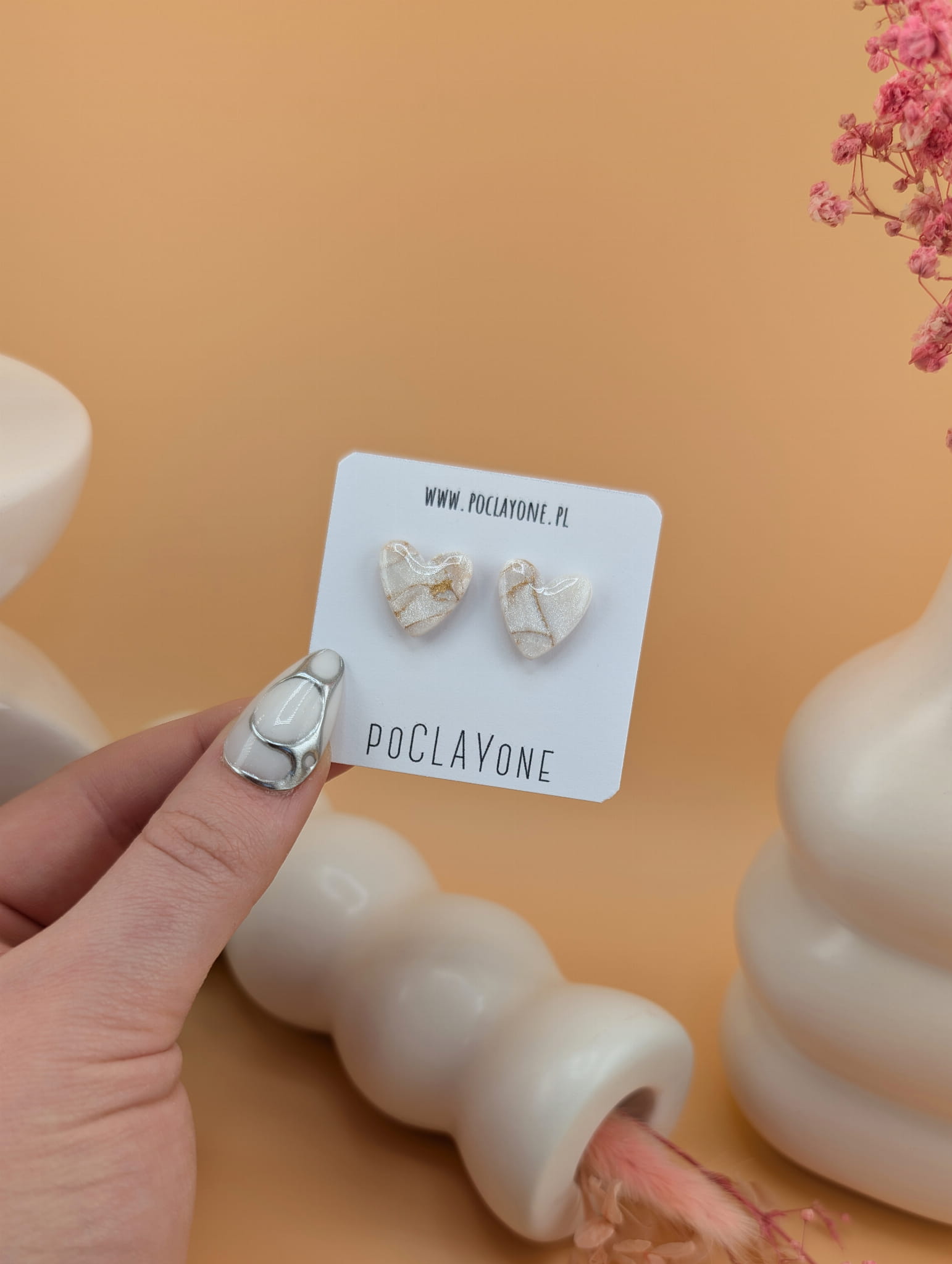 Kolczyki sztyfty serduszka w eleganckiej perłowo-złotej kolorystyce. Minimalistyczna i subtelna biżuteria idealna na walentynki, romantyczne okazje lub jako delikatny dodatek do codziennych stylizacji.