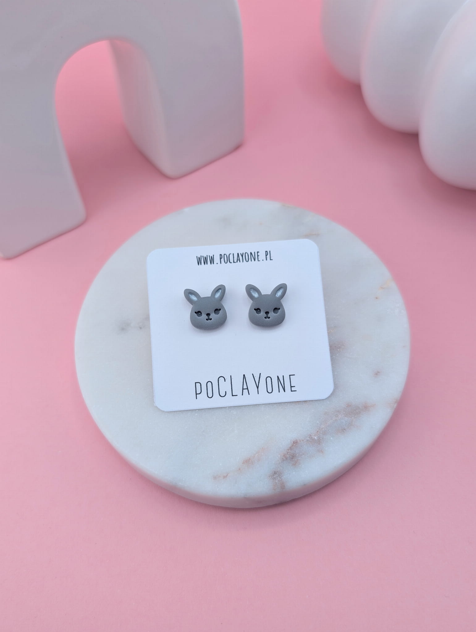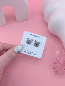 Kolczyki sztyfty zajączki szare – wiosenna i wielkanocna biżuteria