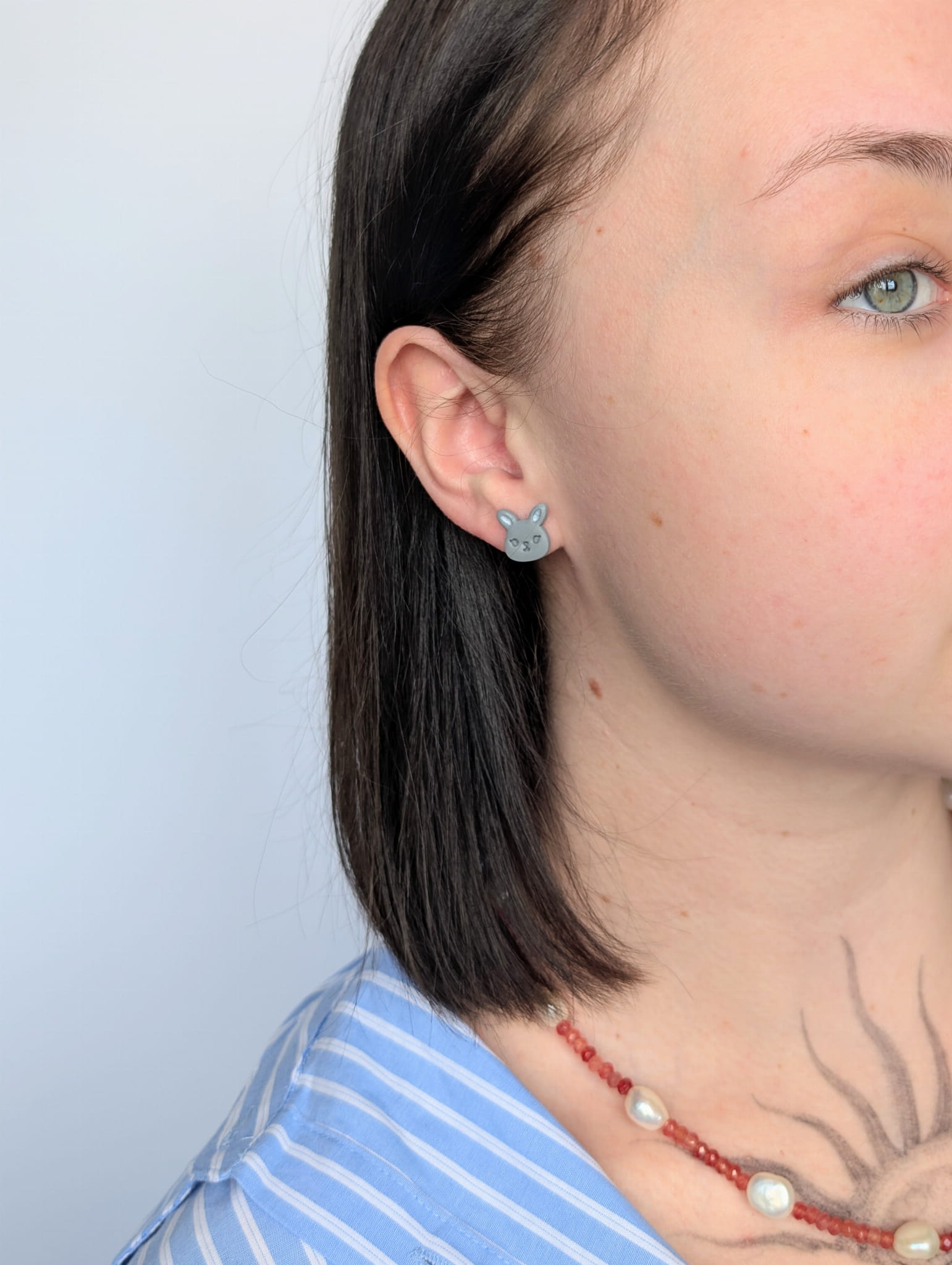 Kolczyki sztyfty zajączki szare to urocza wiosenna biżuteria idealna na Wielkanoc. Malutkie zajączki w delikatnym szarym kolorze dodają subtelnego, świątecznego akcentu i pasują do codziennych stylizacji.