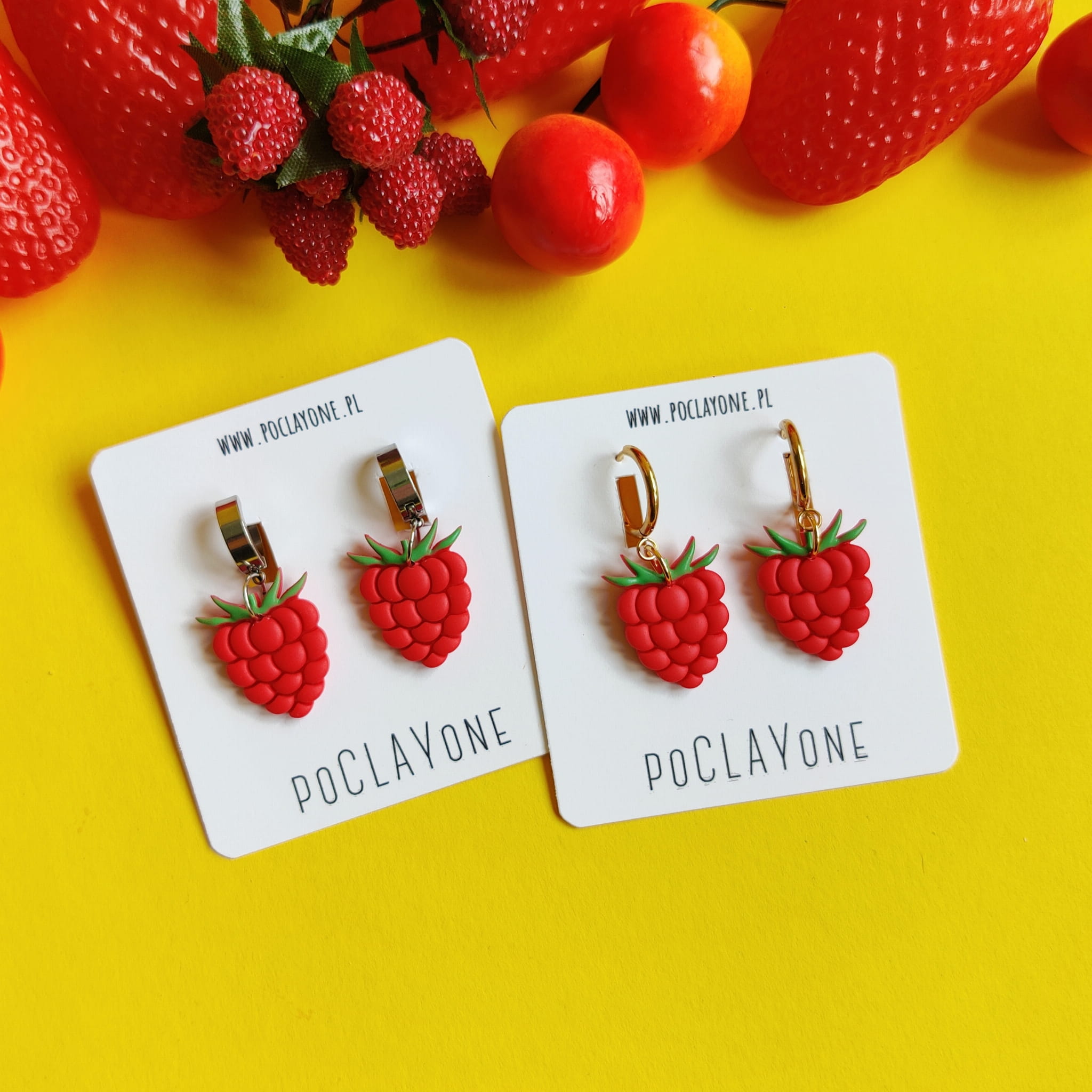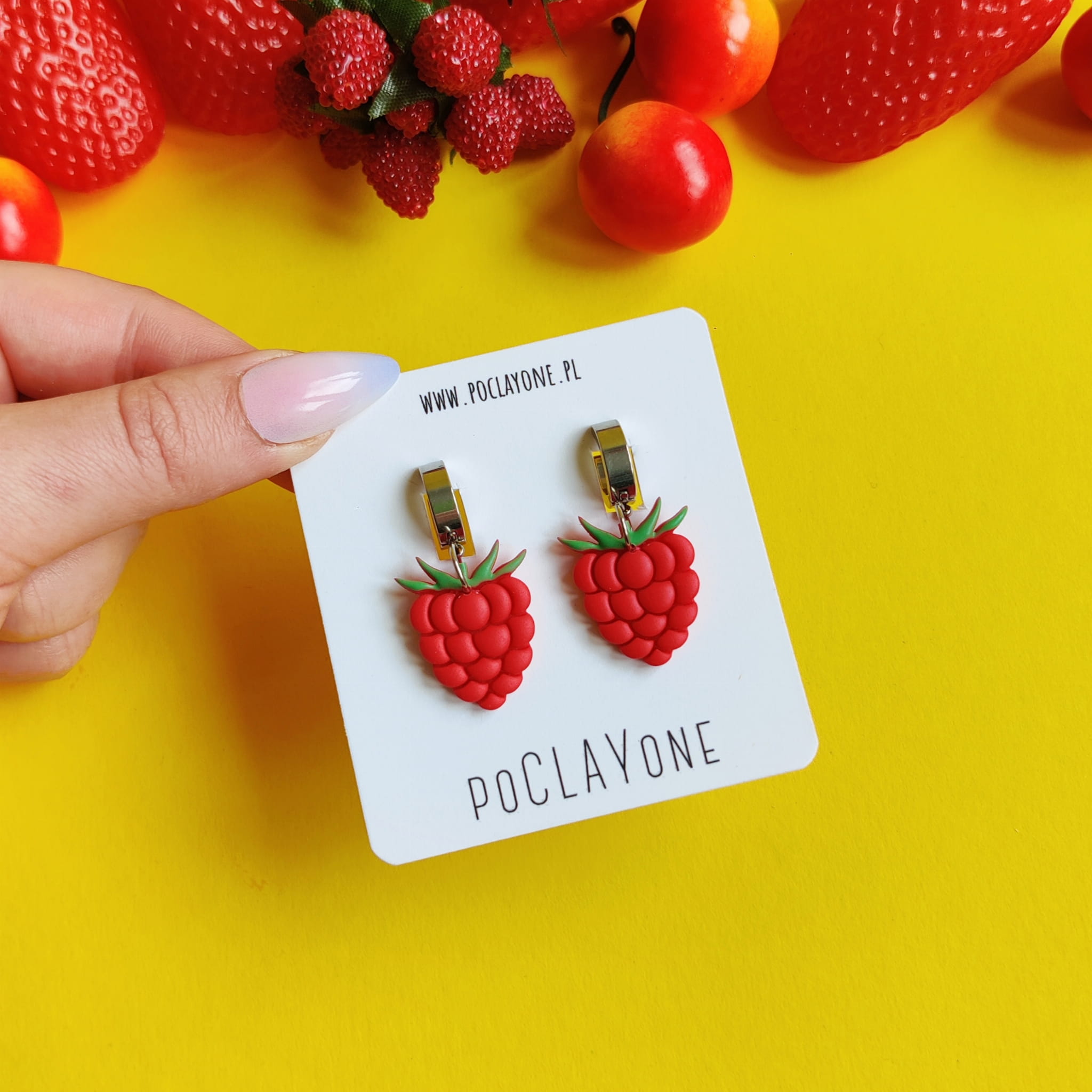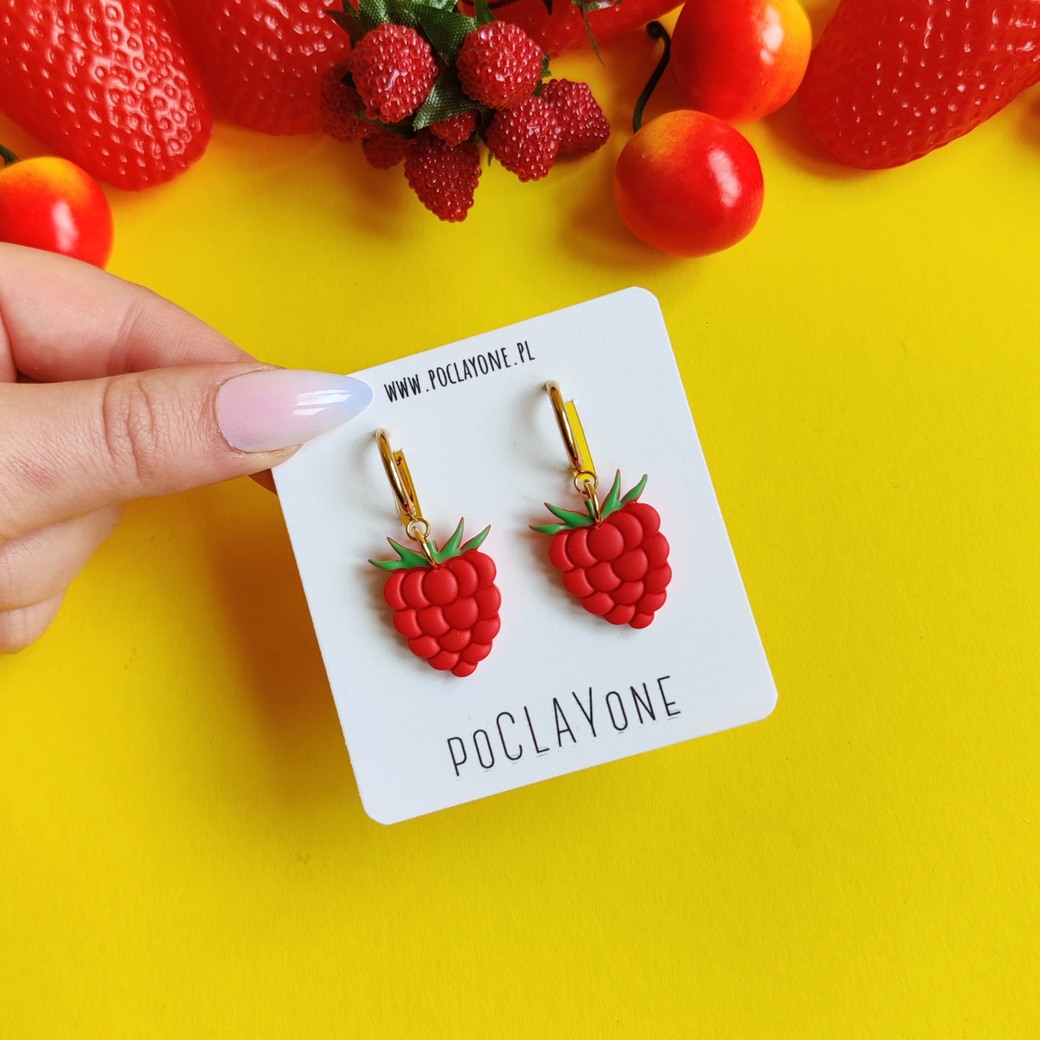 Dodaj do swojej letniej kolekcji świeży, owocowy akcent dzięki wiszącym kolczykom malinki. Każda para jest ręcznie wykonana z trwałej gliny polimerowej, z dbałością o detale i soczysty czerwony kolor, który przyciąga wzrok.
