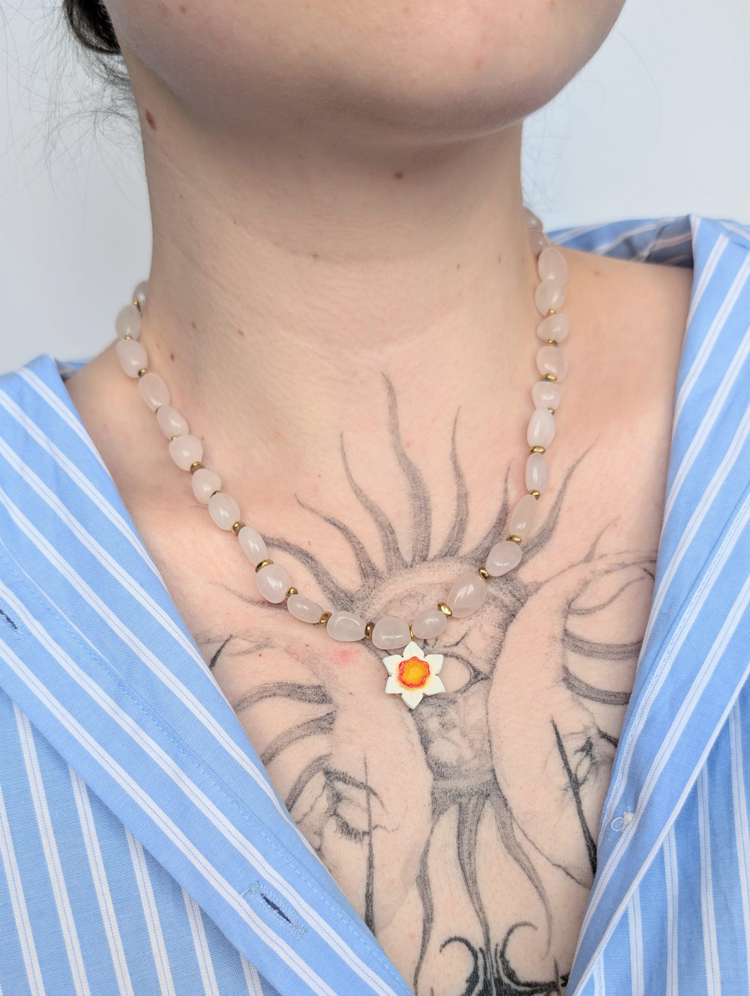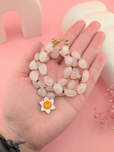 Naszyjnik kwarc różowy z żonkilem