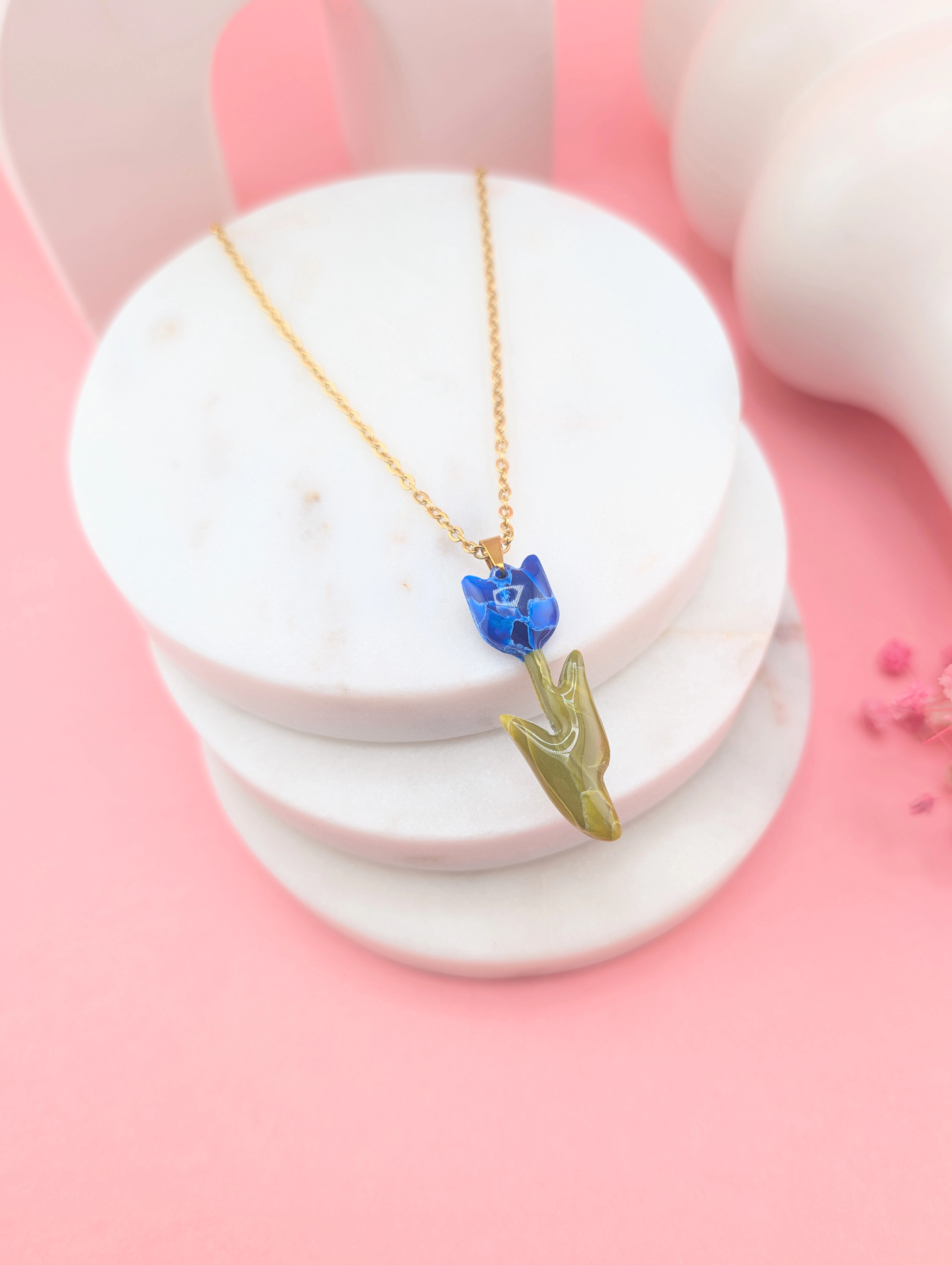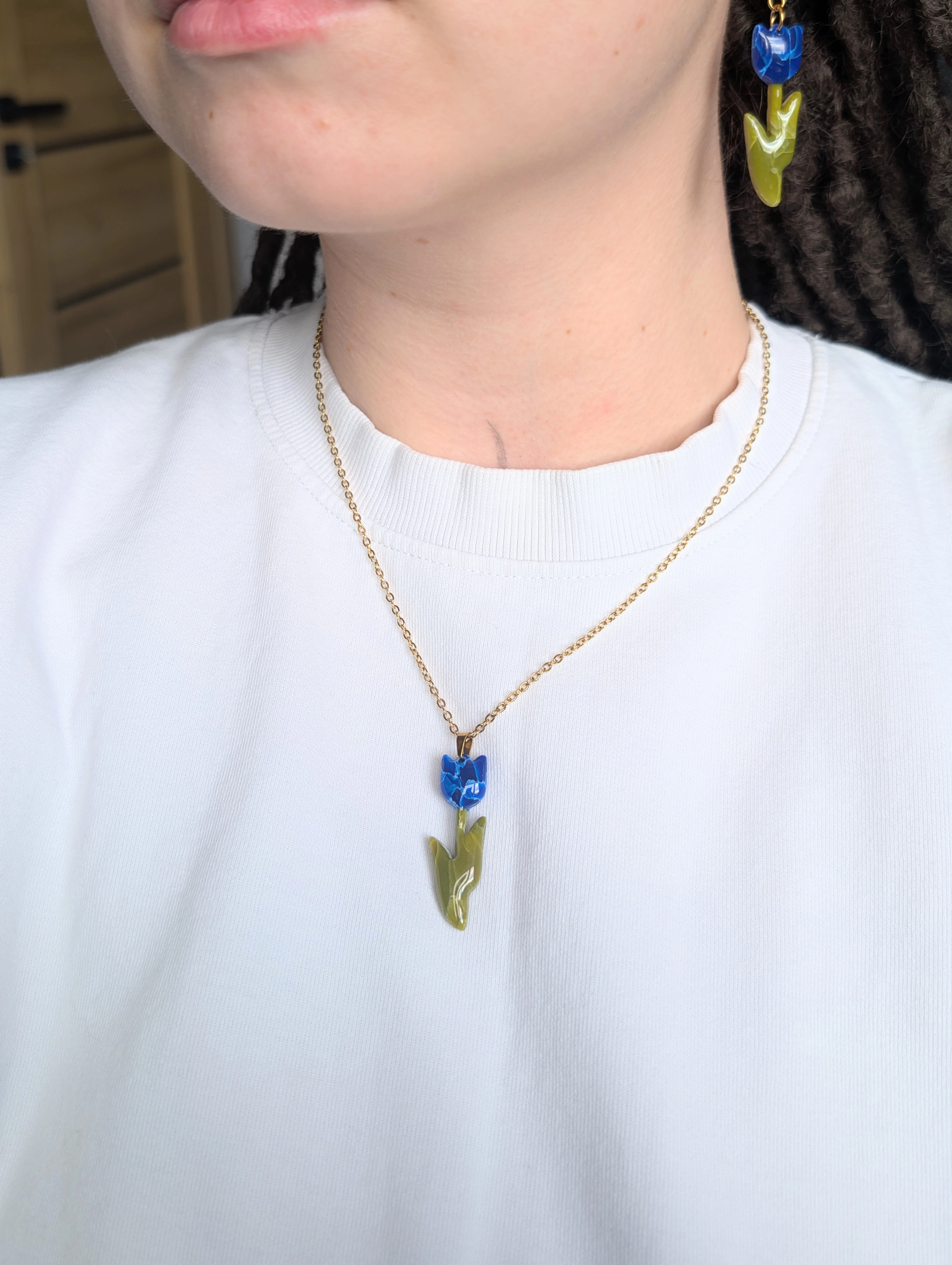 Wiosenny naszyjnik z tulipanem kobaltowym