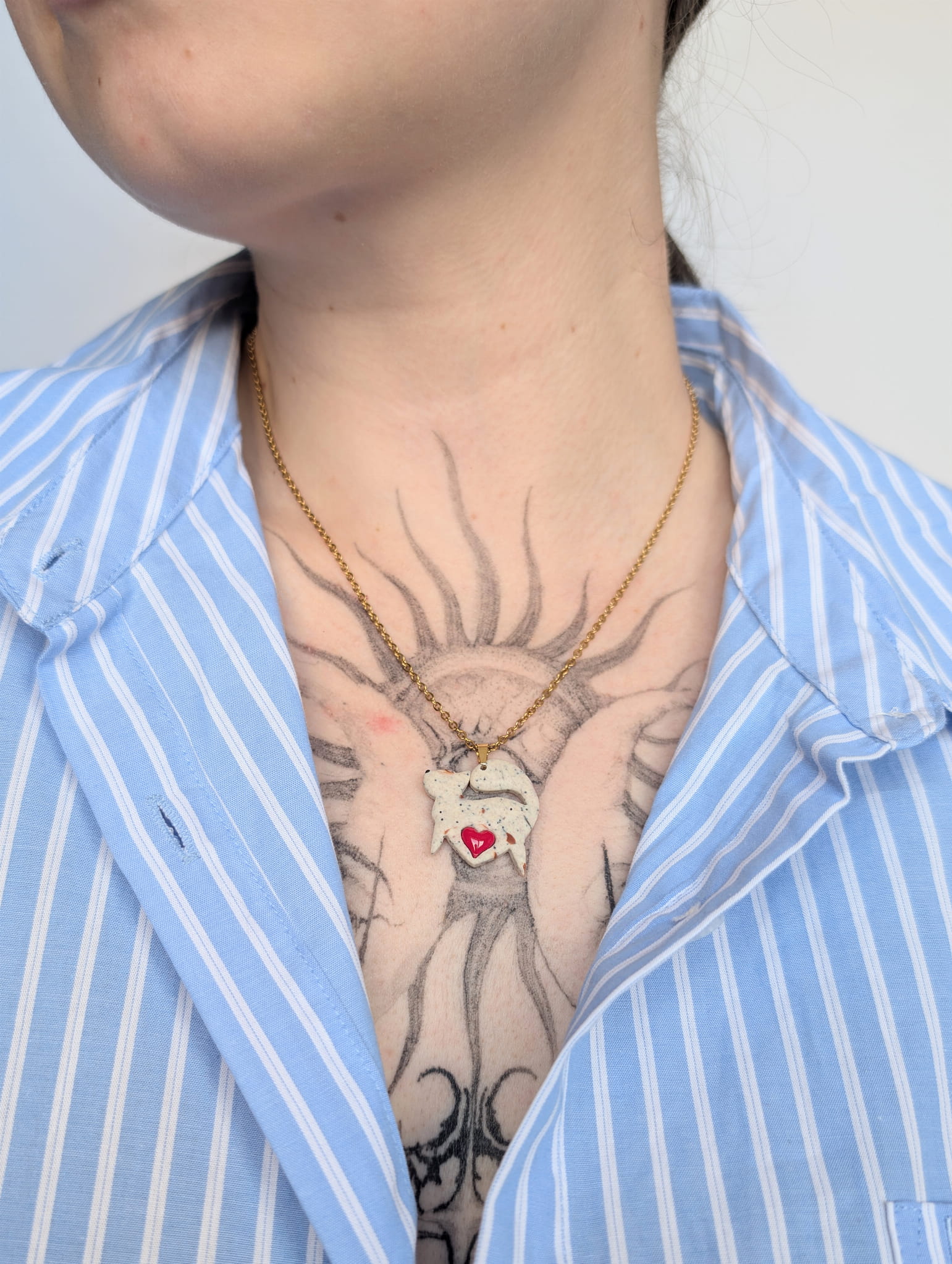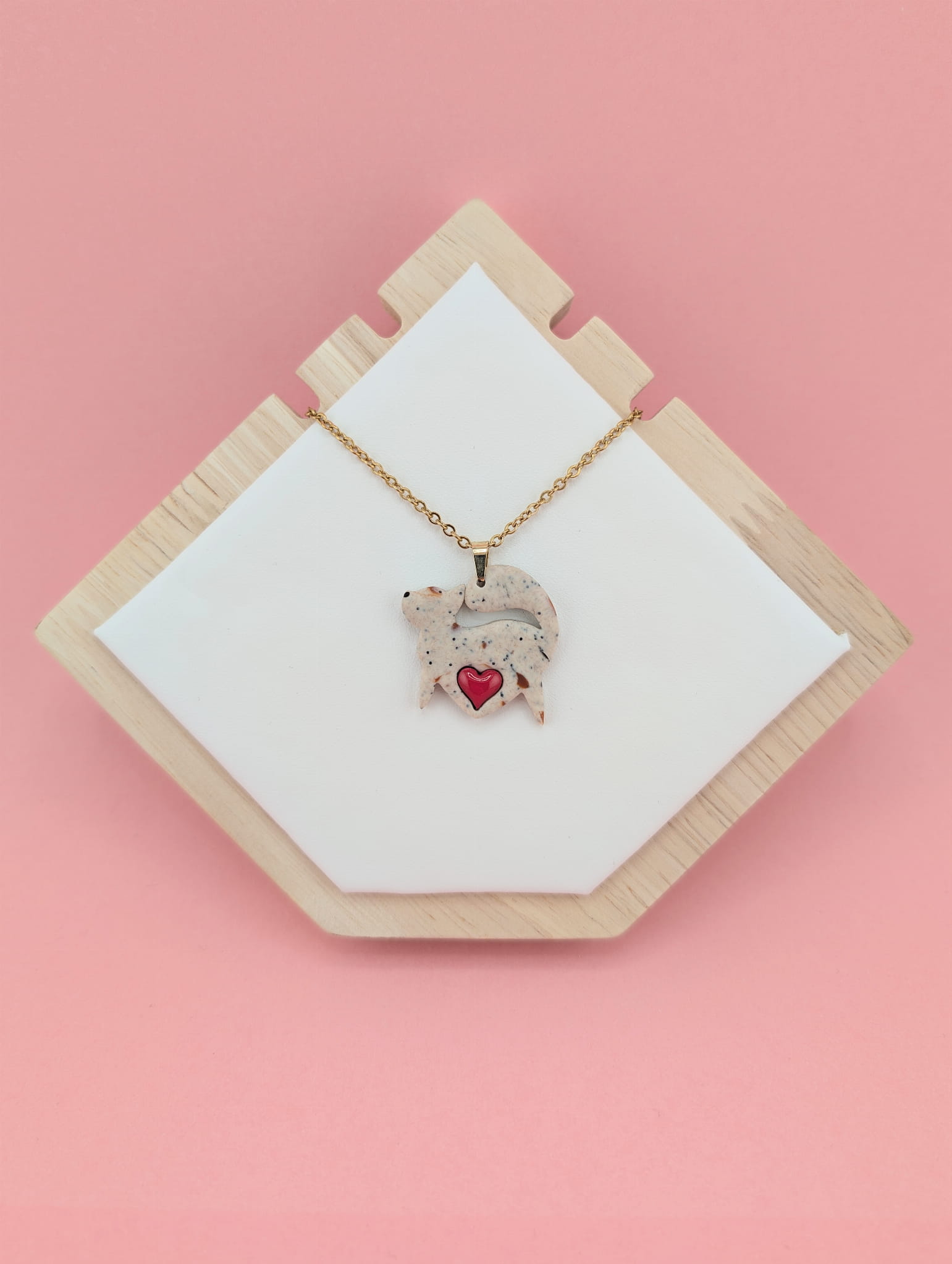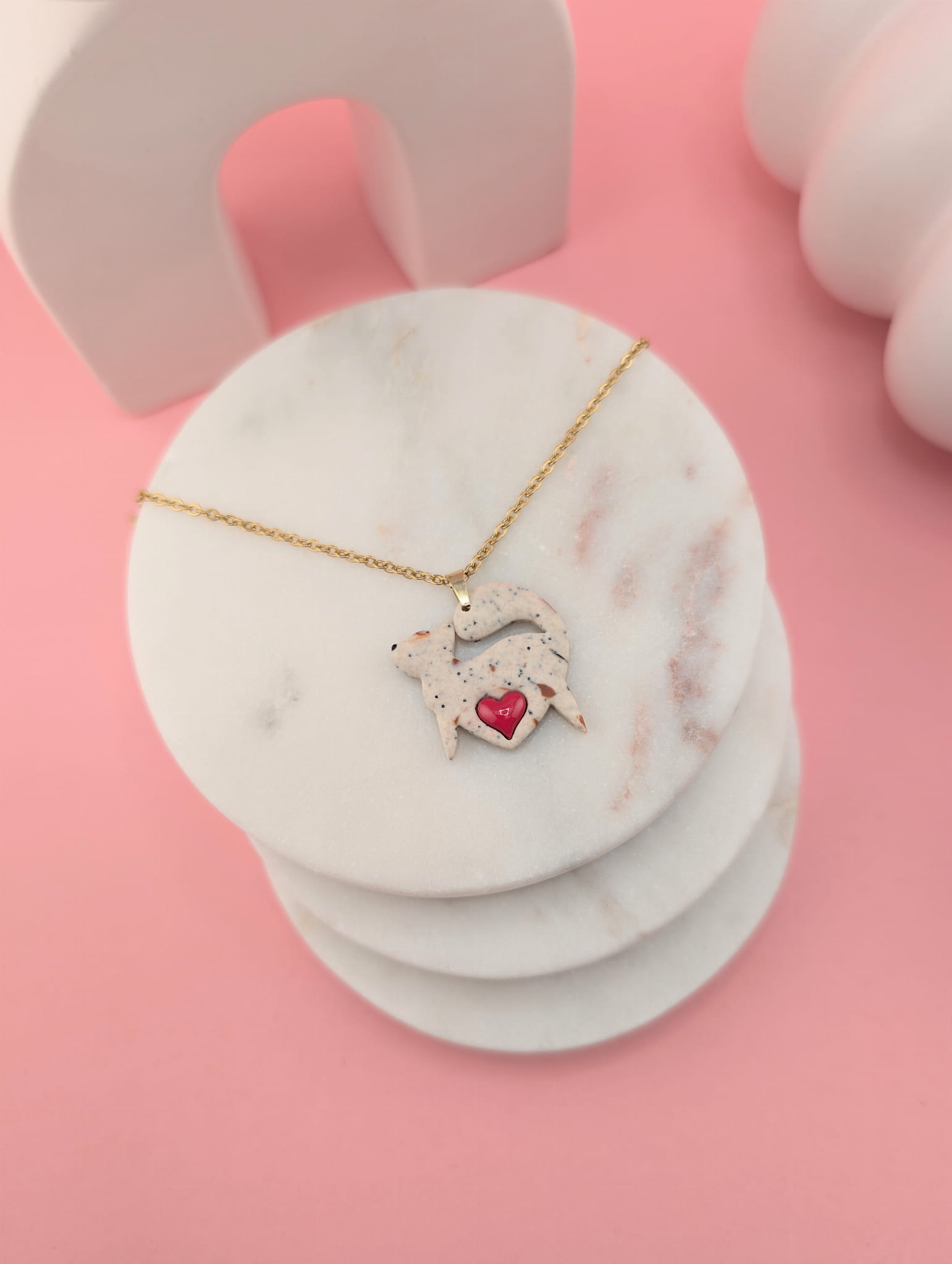 Naszyjnik jest świetnym pomysłem na prezent dla każdej miłośniczki kotów i ręcznie wykonanej, unikatowej biżuterii. Połączenie uroku kotka i czerwonego serduszka sprawia, że naszyjnik zachwyca i przyciąga wzrok.