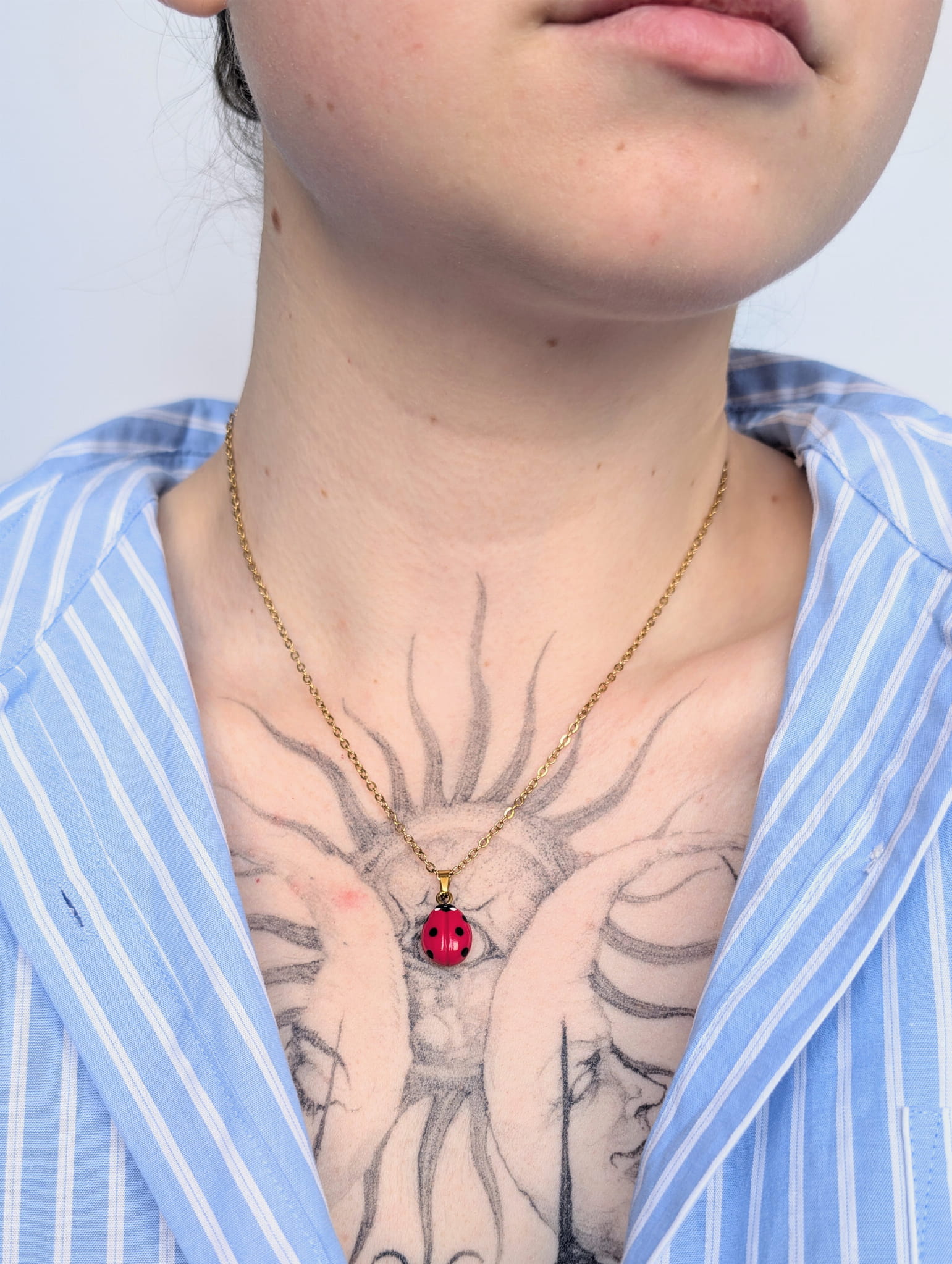 Naszyjnik z biedronką to wyjątkowy dodatek dla miłośniczek naturalnych i radosnych motywów. Zawieszka w kształcie biedronki wprowadza delikatny, wiosenny akcent, który przyciąga wzrok i dodaje lekkości stylizacji.