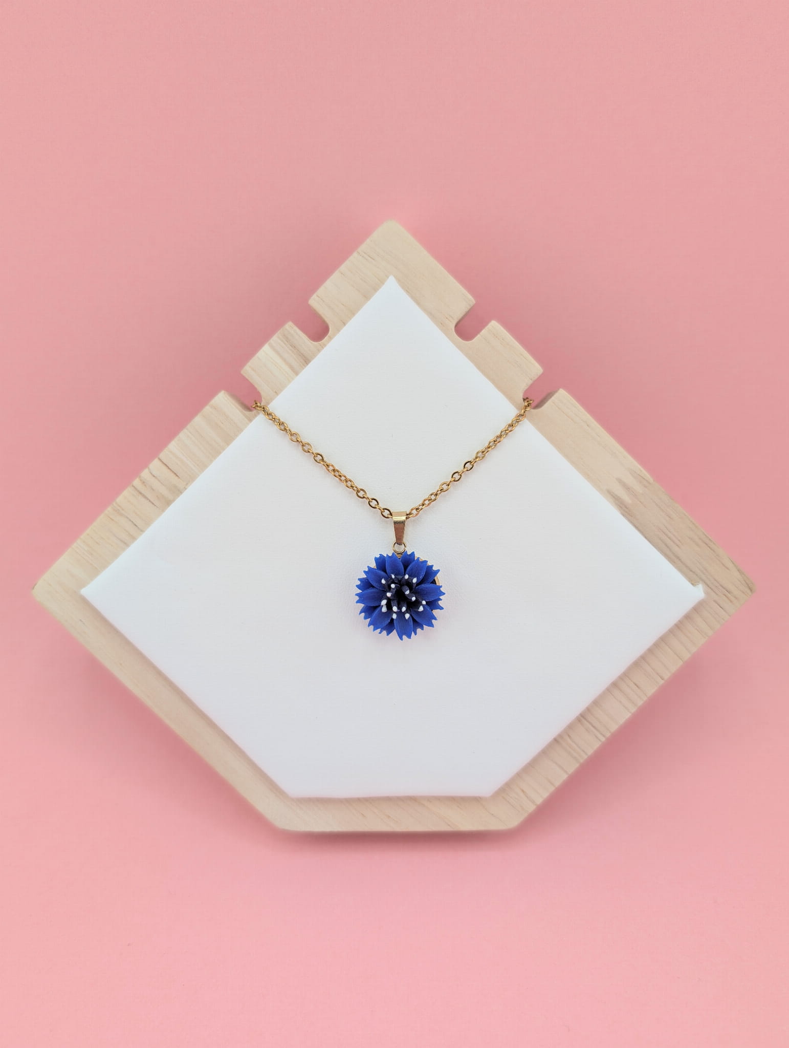 Naszyjnik z chabrem to subtelna biżuteria inspirowana pięknem polnych kwiatów. Intensywny niebieski kolor chabra przyciąga uwagę i nadaje całości świeżości oraz naturalnego uroku. Do kompletu dostępne są również kolczyki sztyfty oraz wiszące w zakładce "Kolczyki".