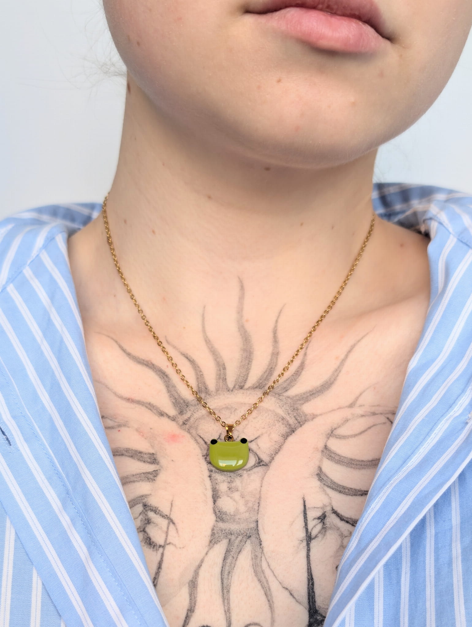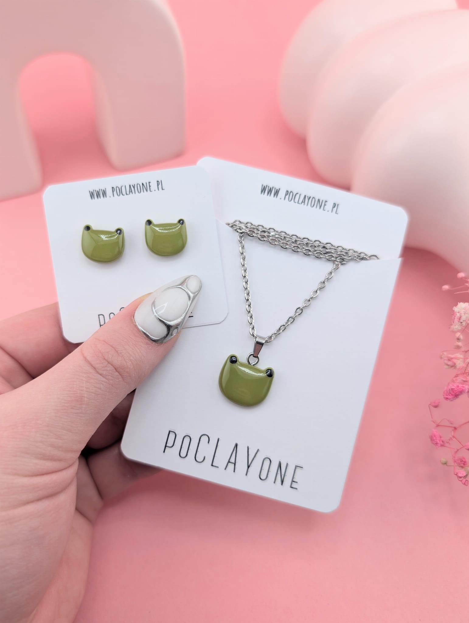 Naszyjnik z zieloną żabką to wyjątkowy dodatek dla miłośniczek naturalnych i zabawnych motywów. Zawieszka w kształcie żabki wprowadza subtelny, wiosenny akcent, który ożywia codzienne stylizacje. W ofercie są również dostępne kolczyki sztyfty do kompletu :)