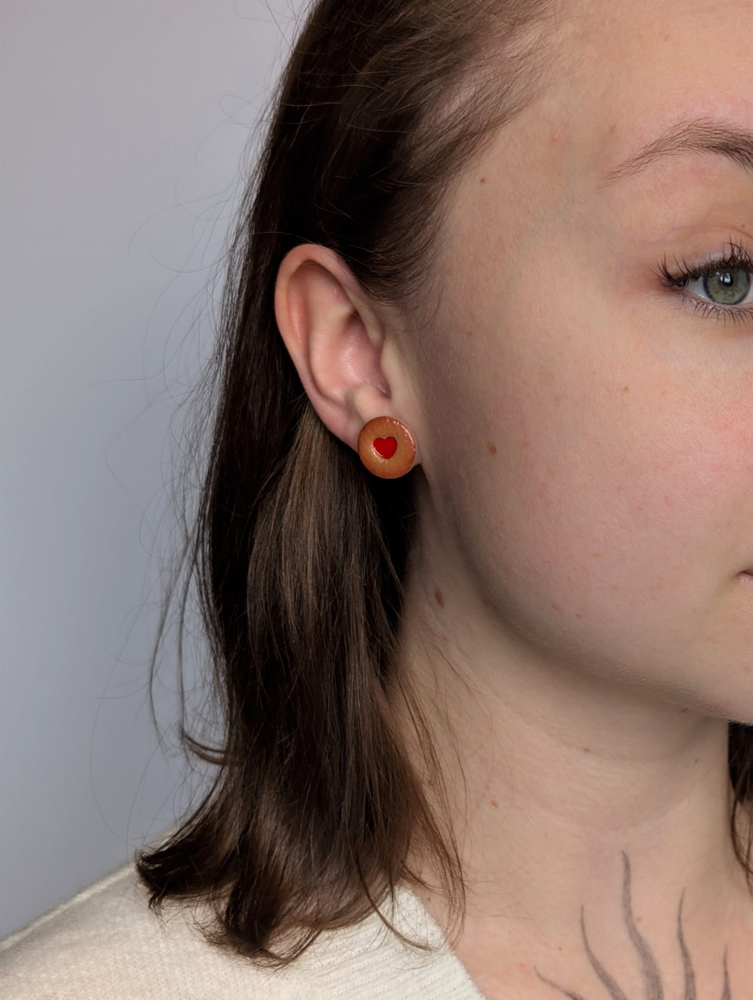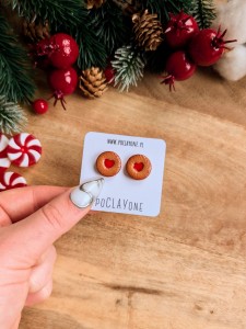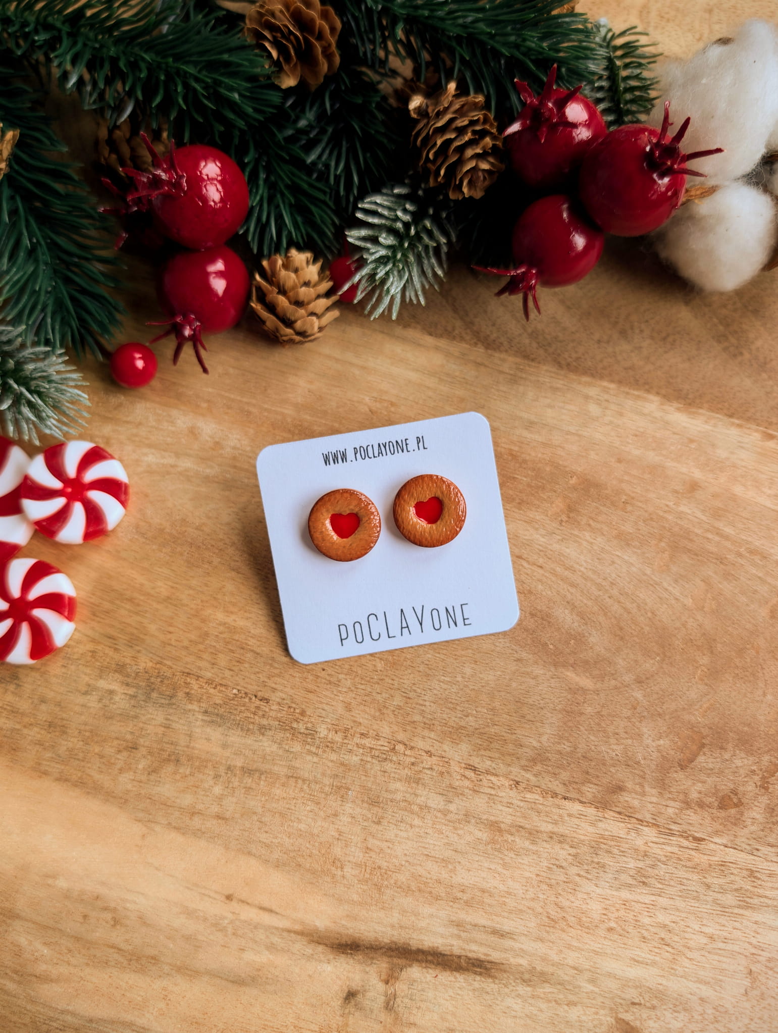 Słodkie kolczyki sztyfty w kształcie ciasteczek z konfiturą – idealne świąteczne dodatki, doskonałe na prezenty pod choinkę i Mikołajki.