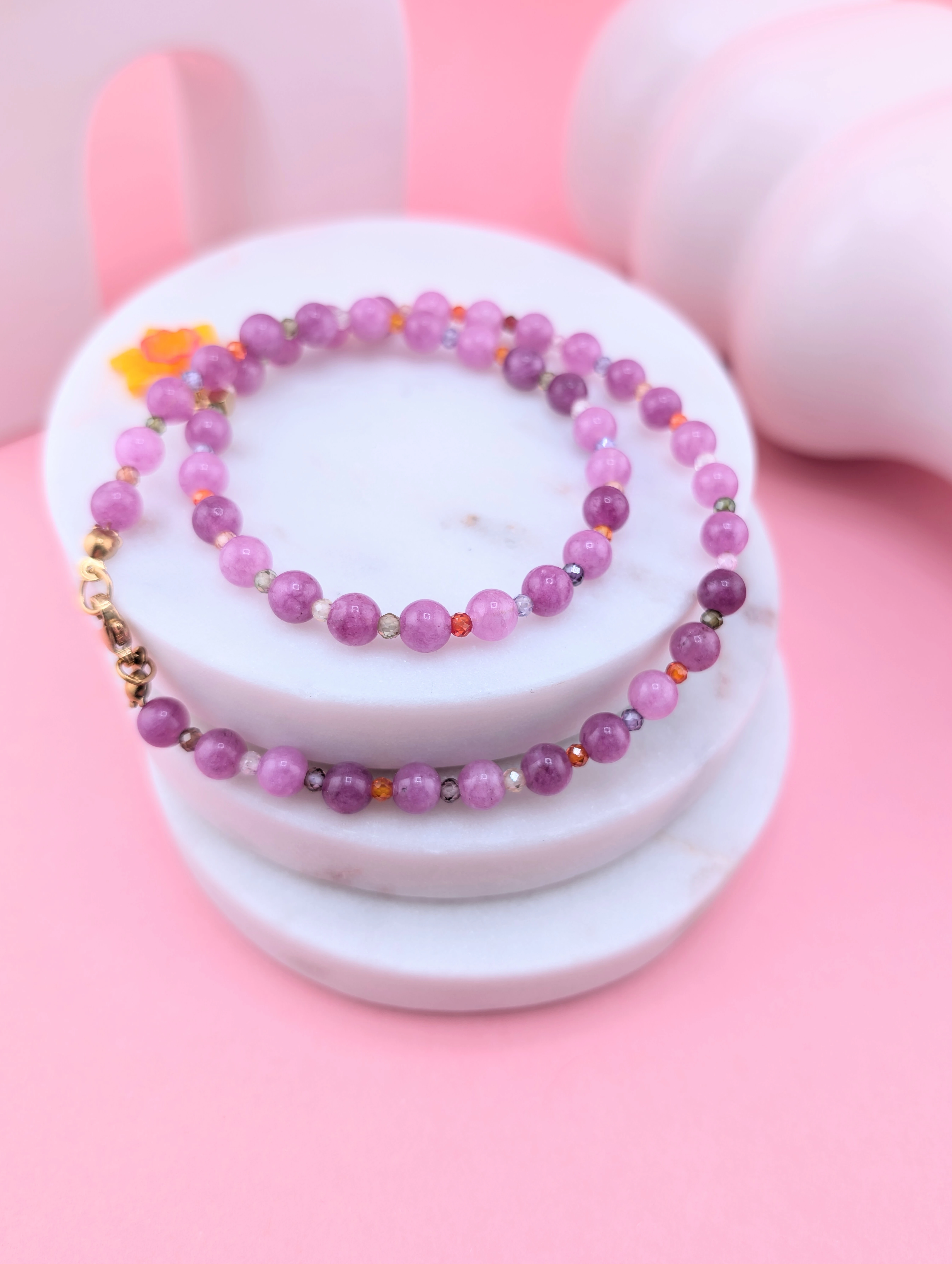 - kolorowe koraliki – kamienie naturalne - różowy jadeit i cyrkonie, trwałe i estetyczne