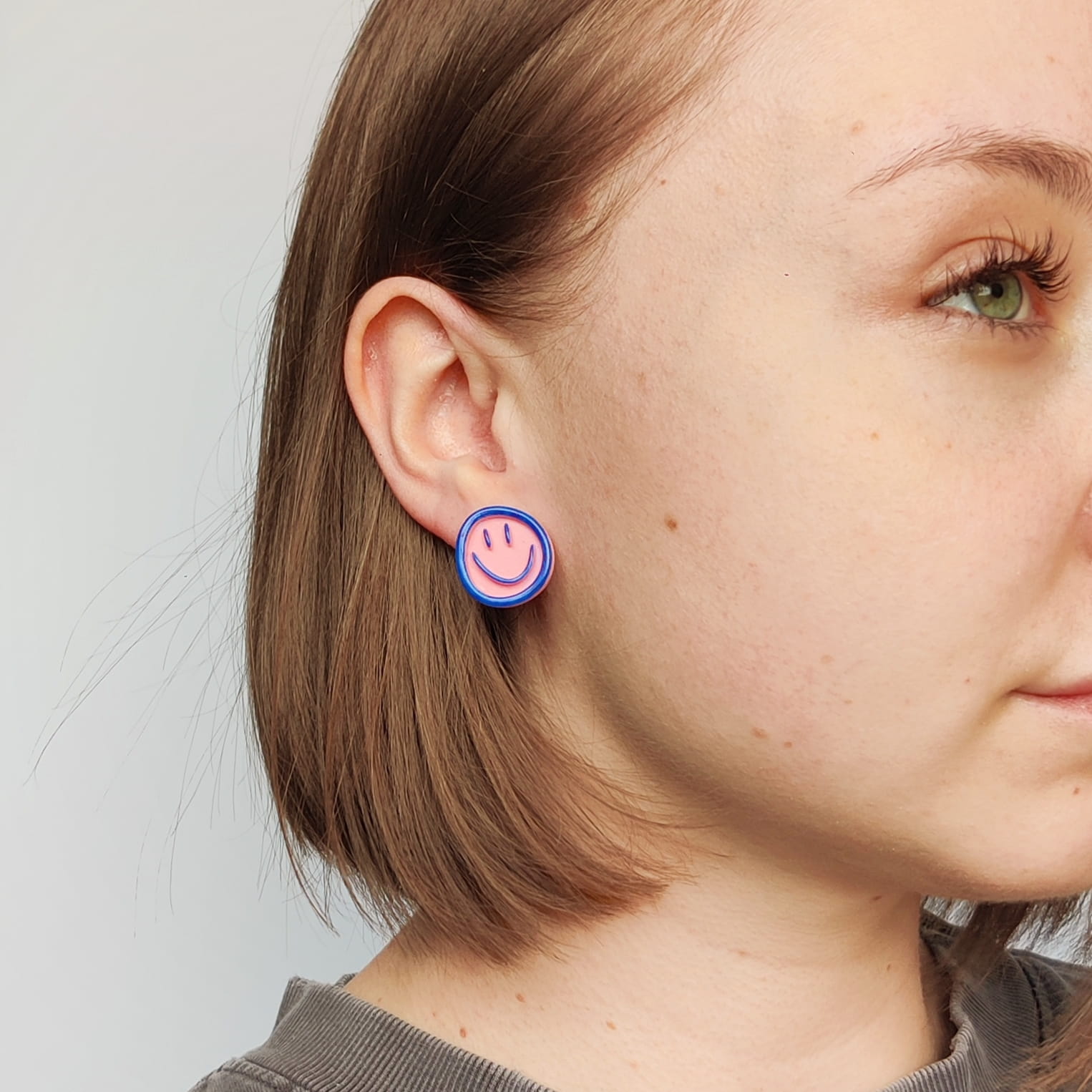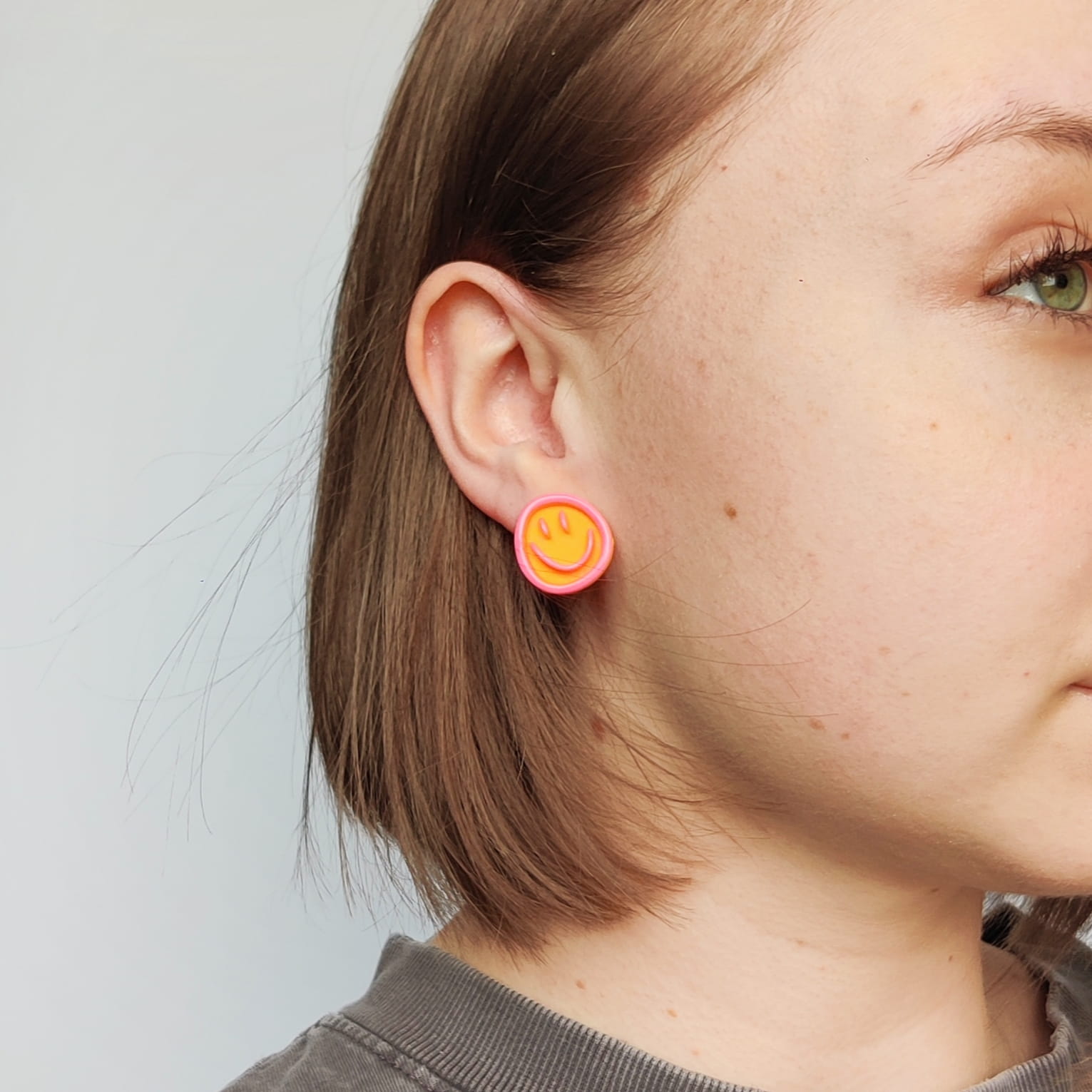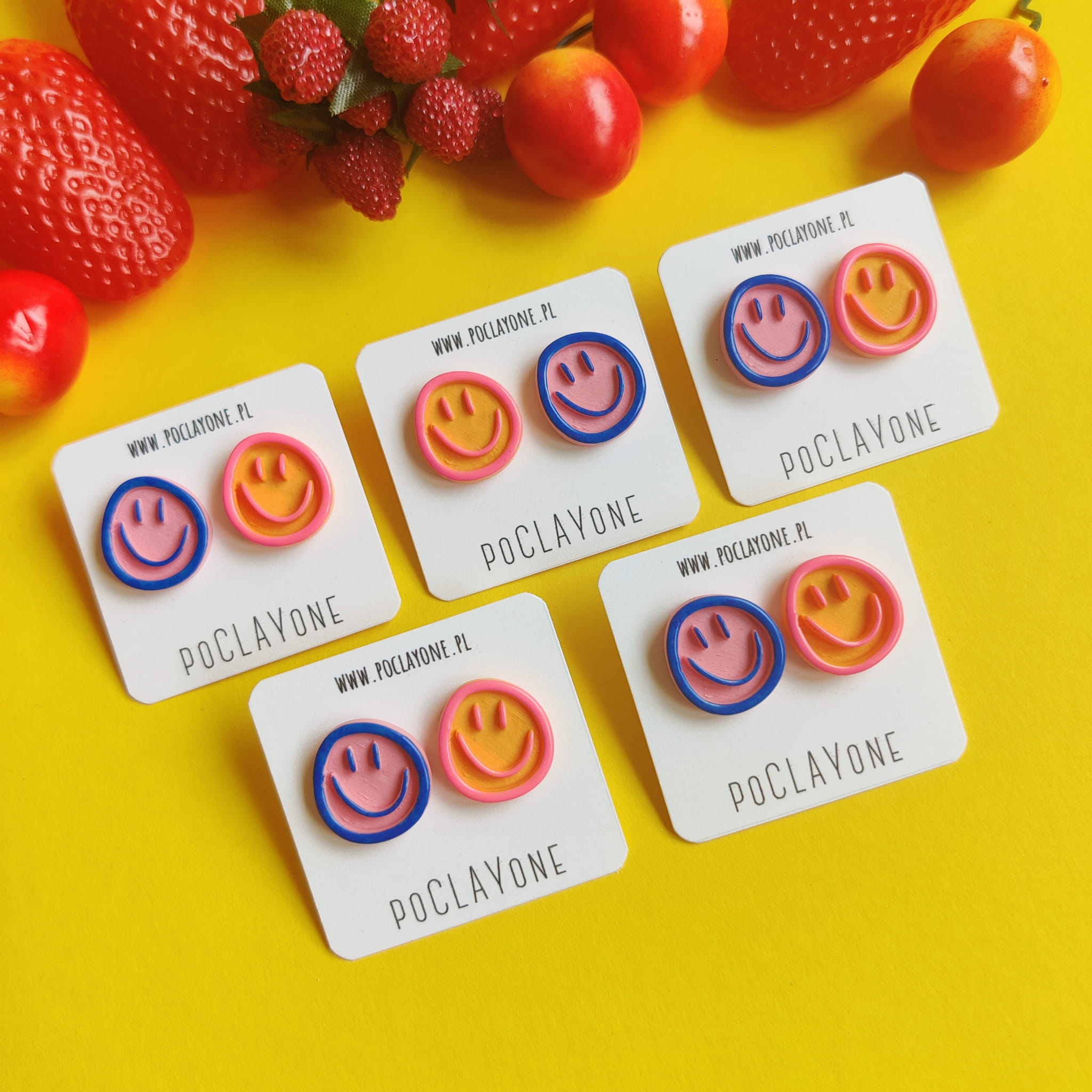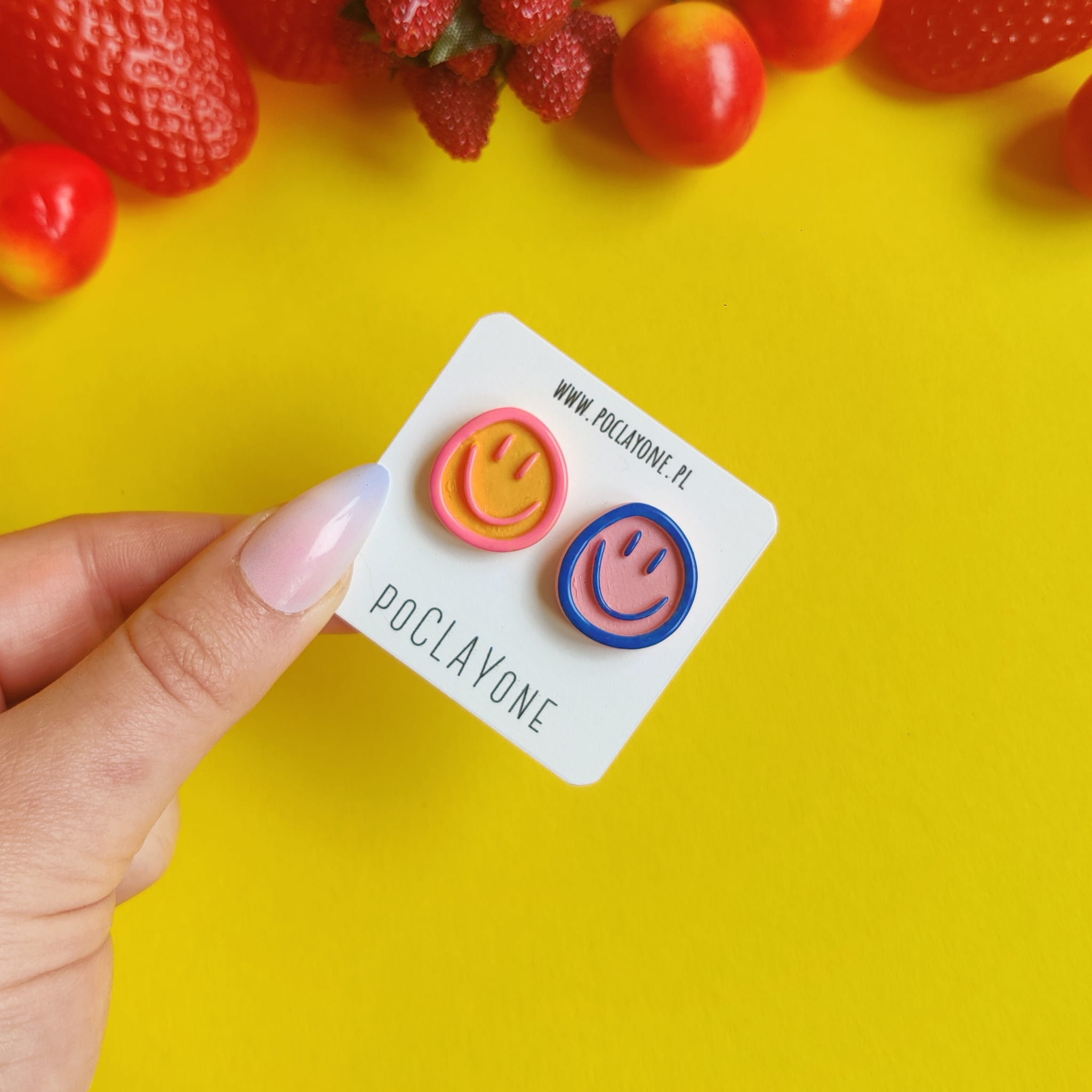 Kolczyki sztyfty Smile – ręcznie wykonane z gliny polimerowej, ze stali chirurgicznej. Bez kleju i żywicy, dzięki czemu są antyalergiczne i bezpieczne dla skóry. Wyraziste, kolorowe kolczyki w kształcie uśmiechniętej buźki, idealne na lato, festiwale i codzienne stylizacje dla kobiet i dzieci.