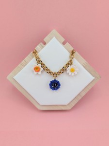 Połączenie chabra, stokrotki i żonkila sprawia, że naszyjnik jest uniwersalny – świetnie pasuje do codziennych outfitów, jak i do wiosennych, romantycznych stylizacji. To również wspaniały pomysł na prezent dla miłośniczek natury i ręcznie wykonywanej biżuterii.