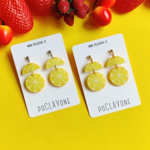 Dodaj do swojej letniej kolekcji wyjątkowy, owocowy akcent dzięki wiszącym kolczykom plasterkom cytryny. Wykonane ręcznie z gliny polimerowej, te kolczyki przyciągają uwagę intensywnym, soczystym żółtym kolorem, który idealnie wpisuje się w wakacyjny klimat.
