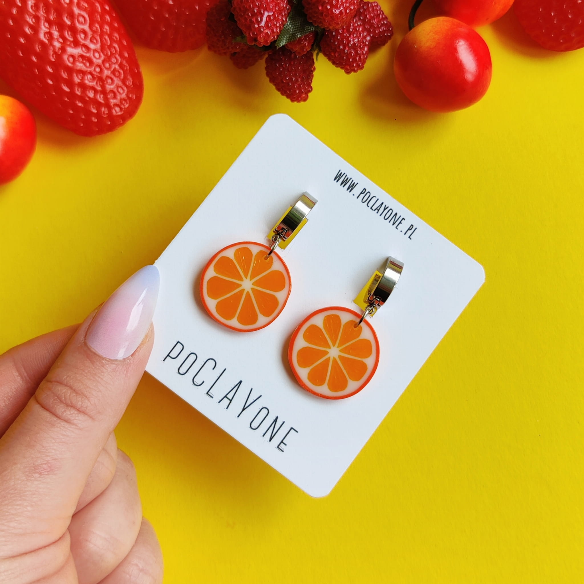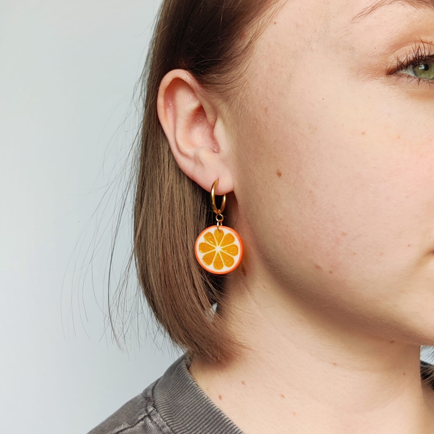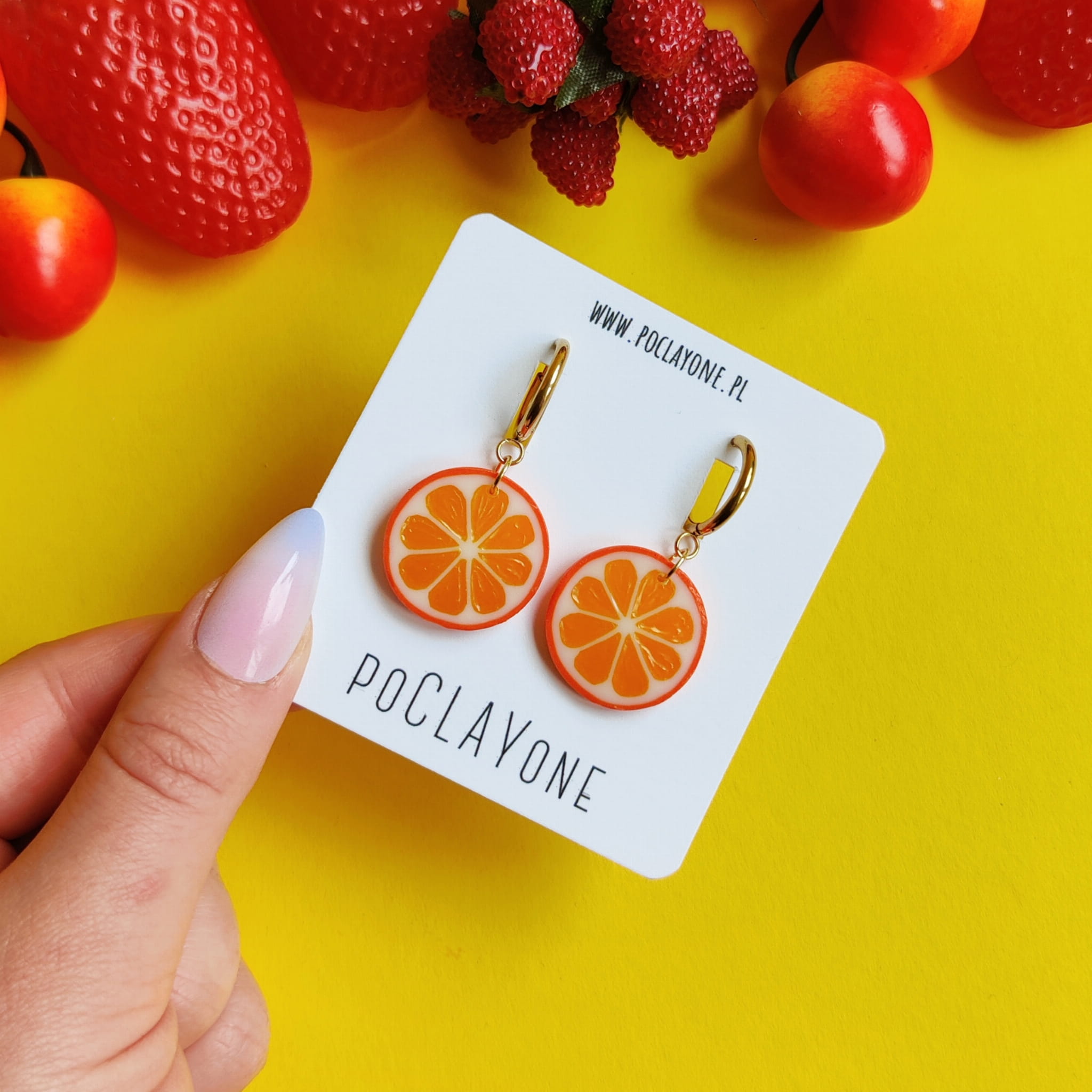 Wybierz owocowe kolczyki wiszące plasterki pomarańczy i ciesz się ręcznie robioną, letnią biżuterią pełną kolorów i wakacyjnego klimatu.
