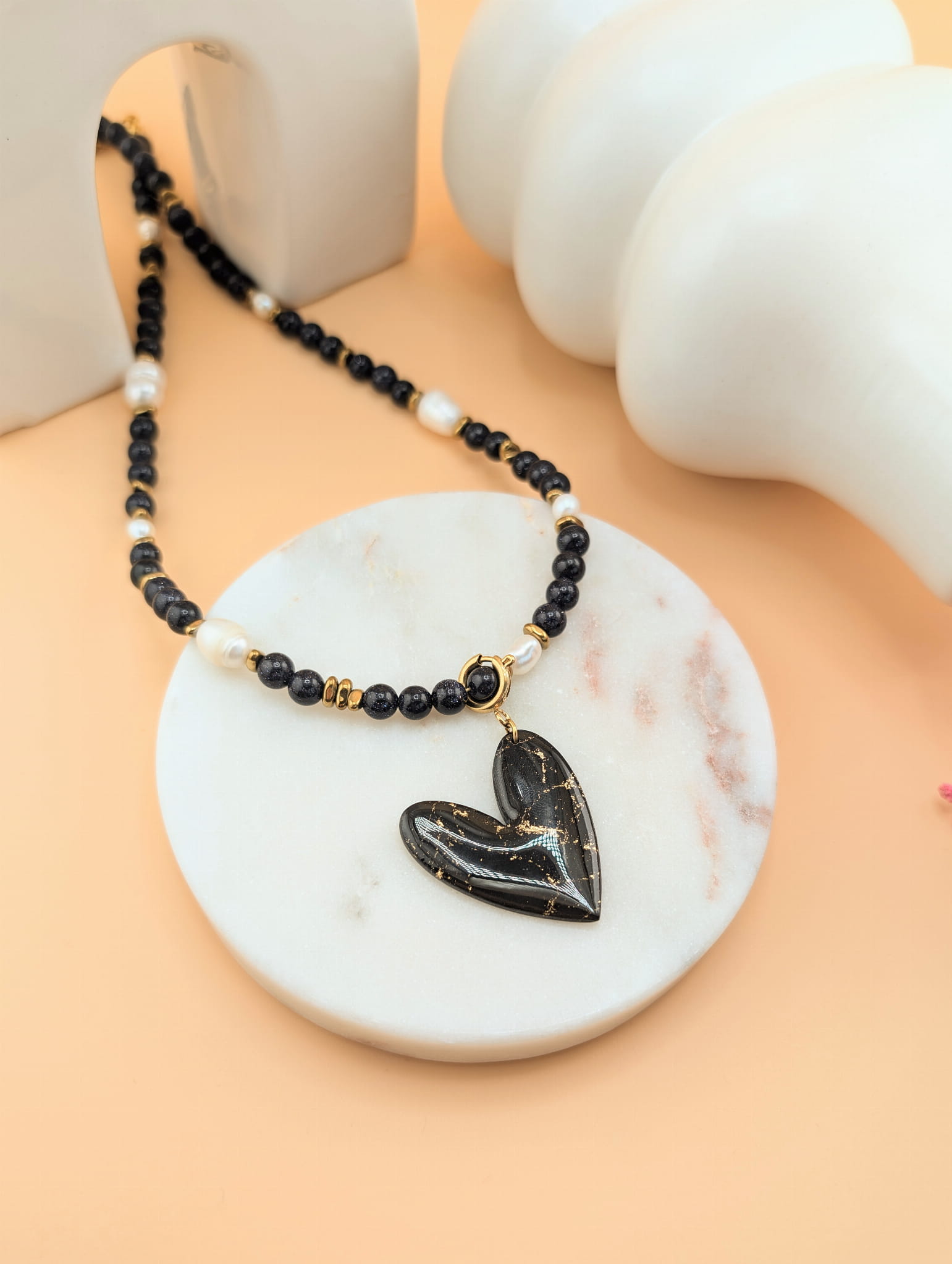 Zawieszka do naszyjnika serce marmurkowe czarne duże