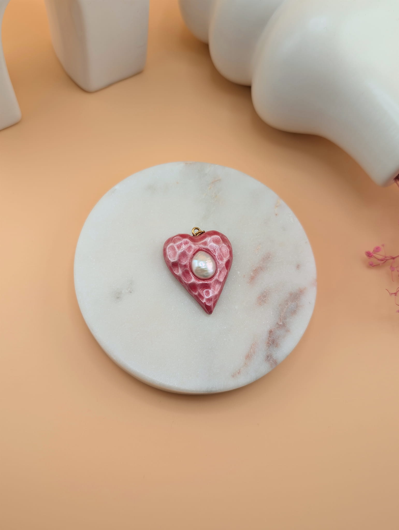 Zawieszka do naszyjnika serce czerwone z perłą – romantyczna biżuteria handmade