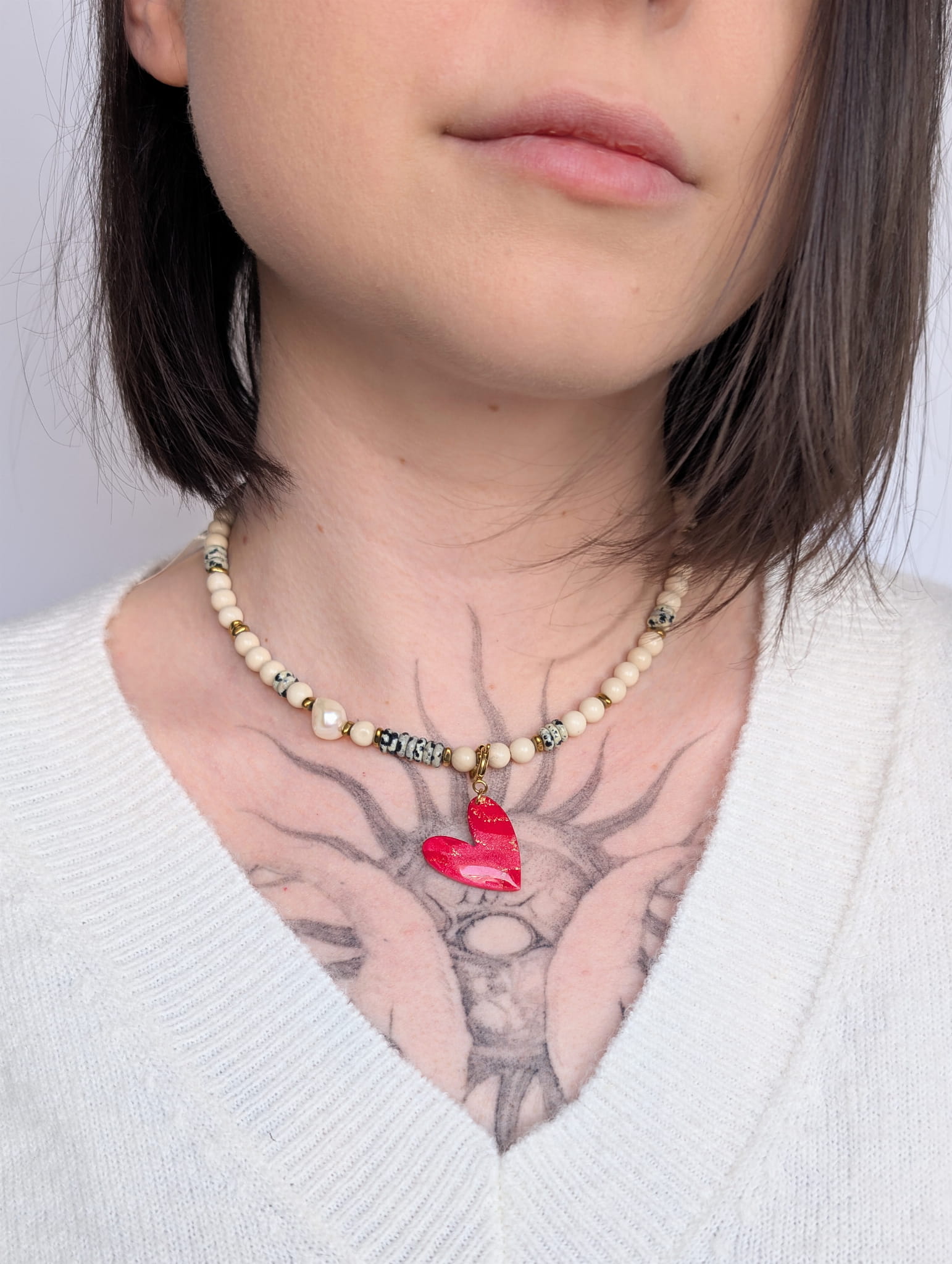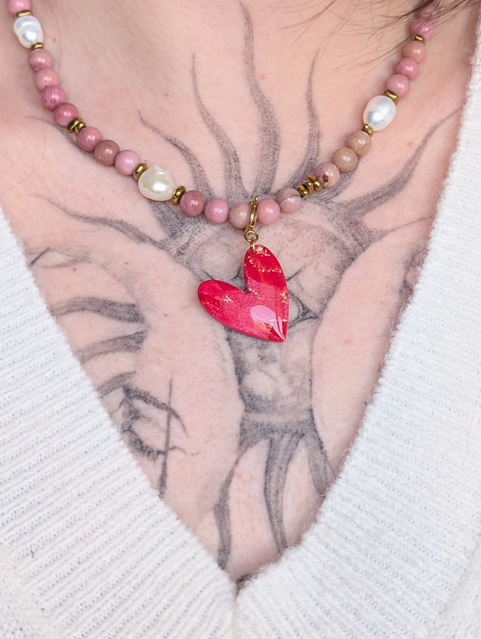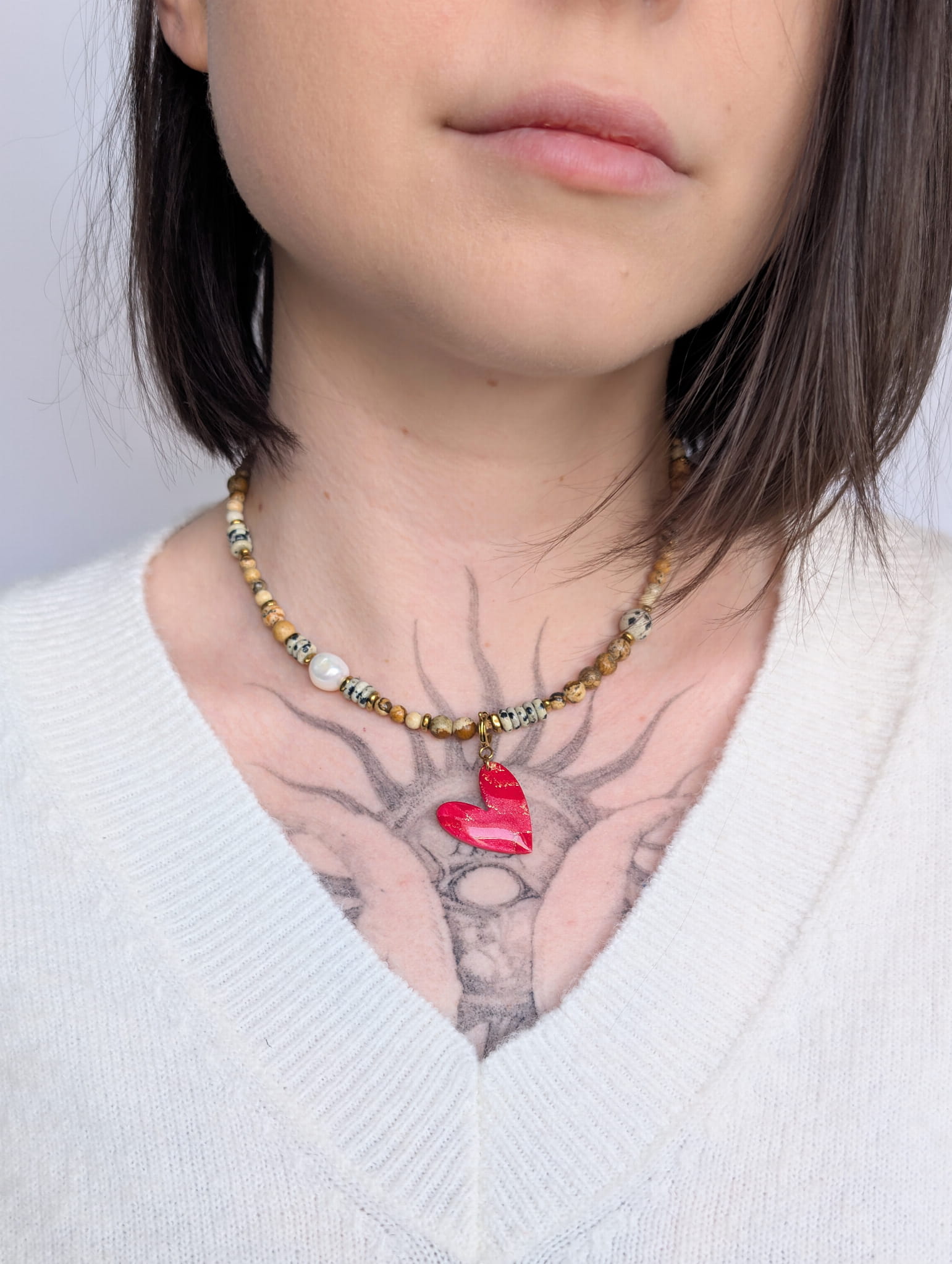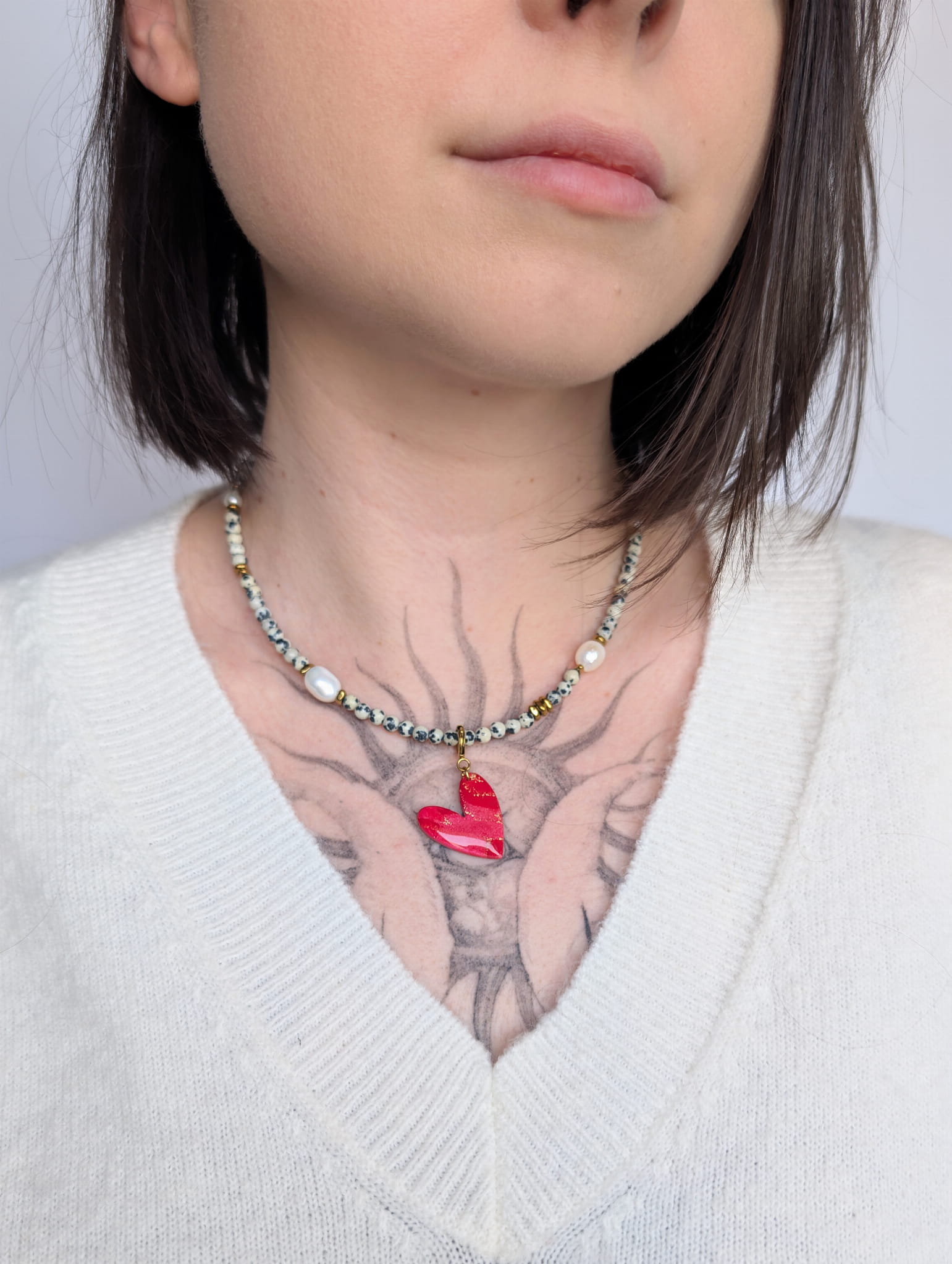 Ta uniwersalna zawieszka w kształcie serduszka to uroczy dodatek do każdej kolekcji biżuterii handmade. Możesz ją zamocować na zwykłej krawatce do łańcuszka lub na odpinanej krawatce do naszyjnika z koralików, dzięki czemu łatwo zmienisz wygląd swojego naszyjnika i dopasujesz go do stylizacji lub nastroju.