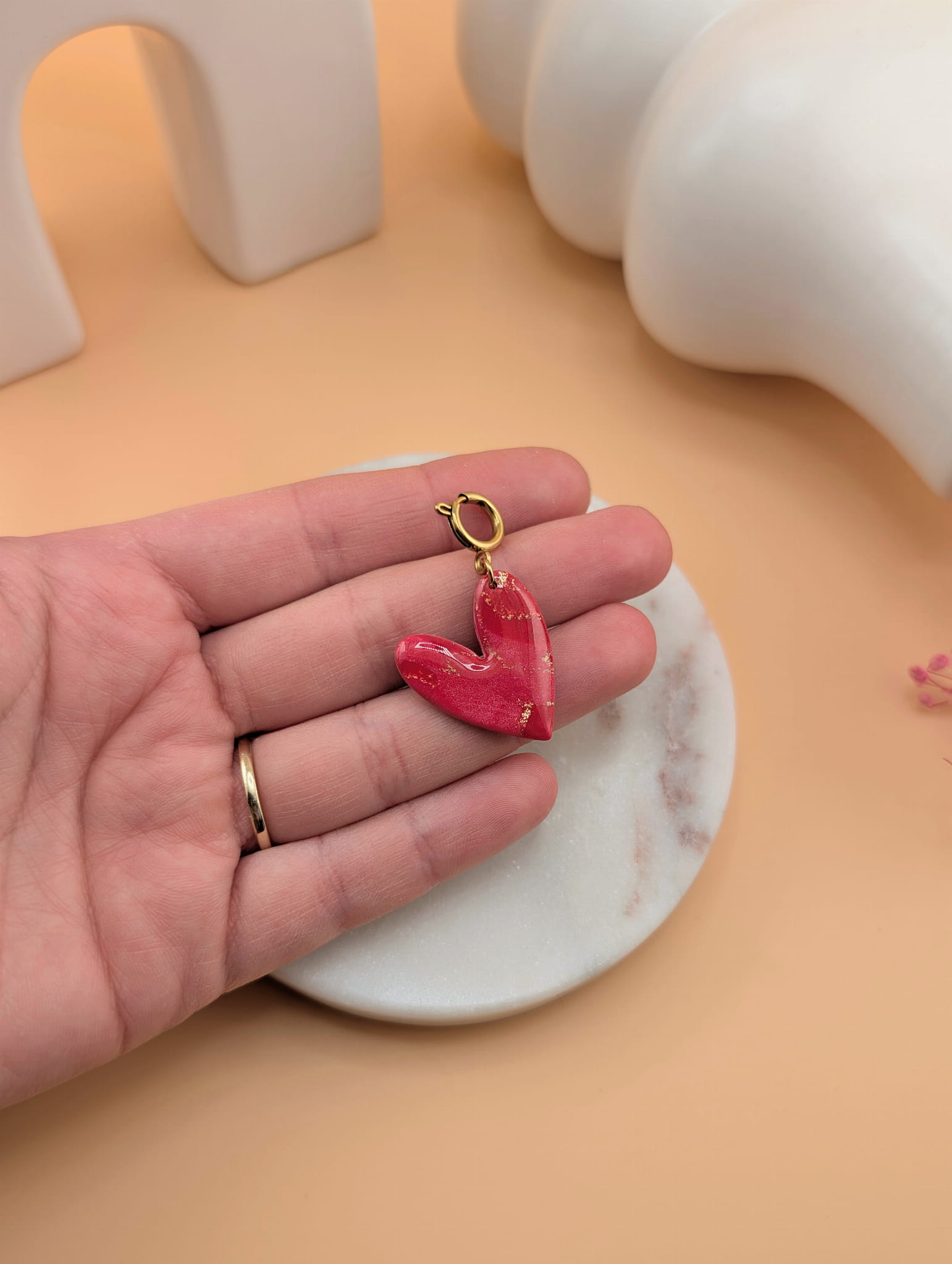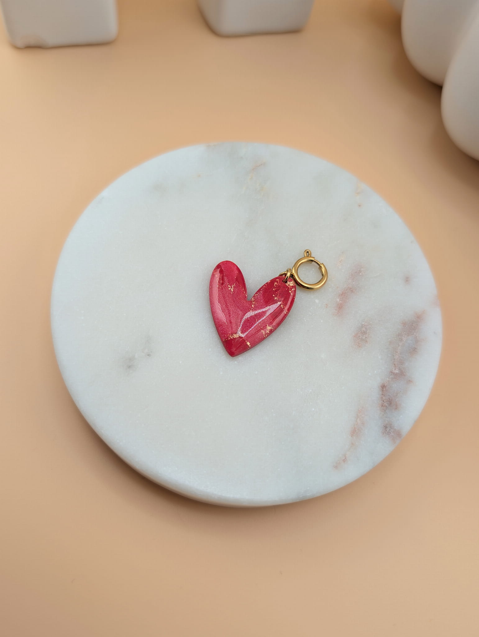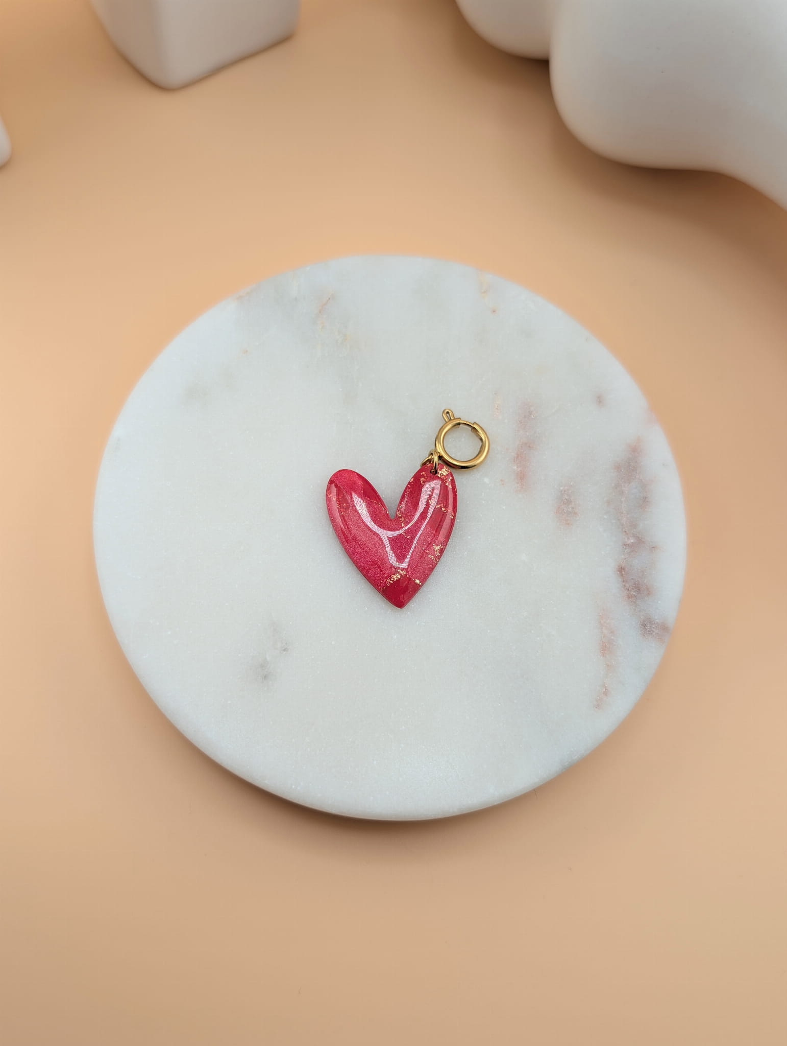Zawieszka do naszyjnika serce marmurkowe czerwone