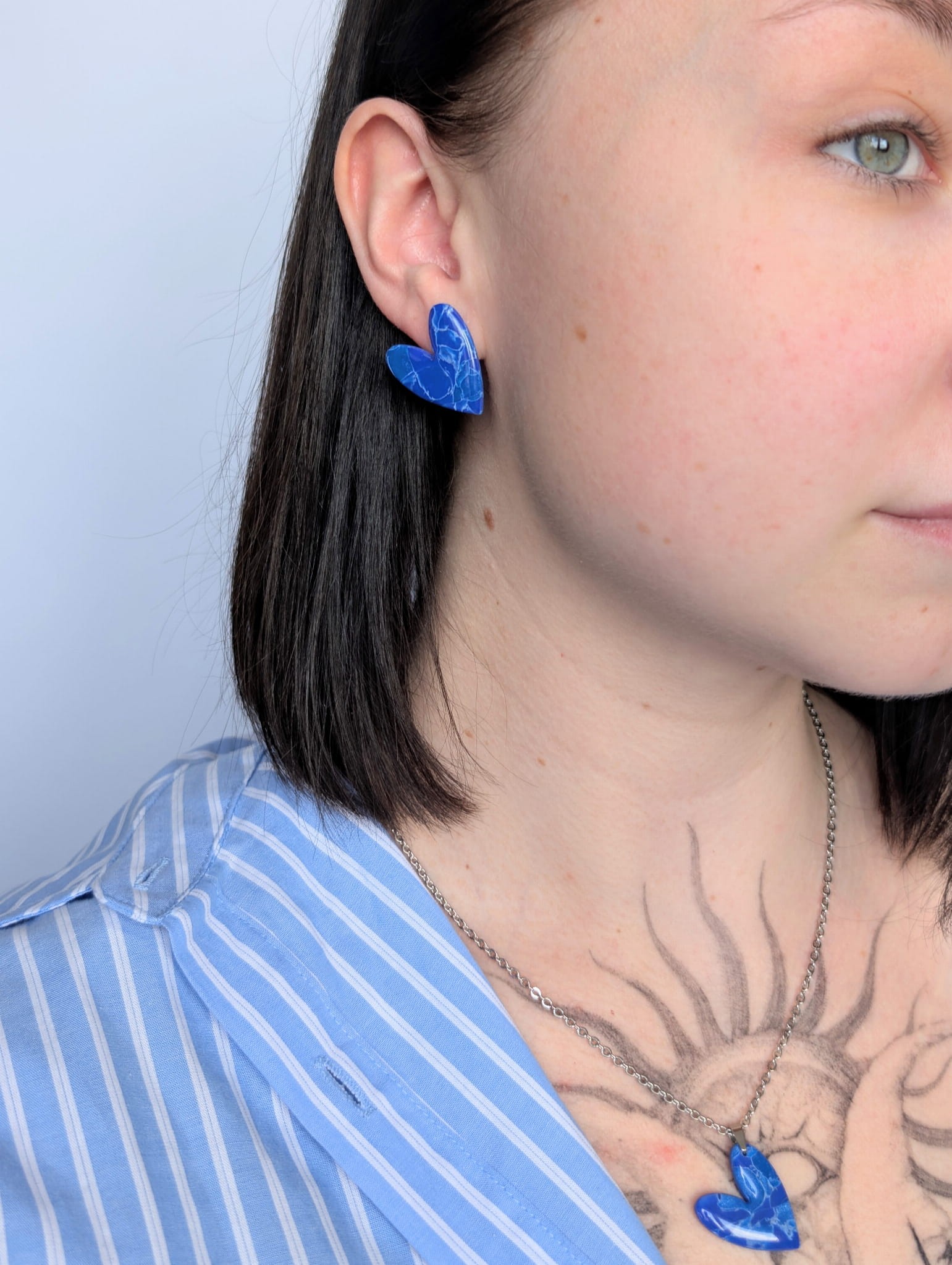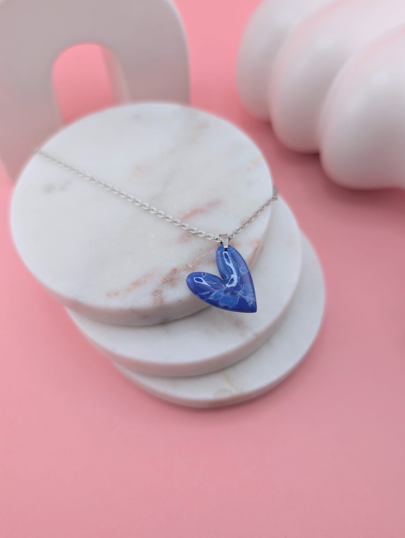 Intensywny kobaltowy kolor serc przyciąga wzrok, a srebrne wykończenie łańcuszka i elementów dodatkowo podkreśla elegancję i uniwersalny charakter biżuterii.